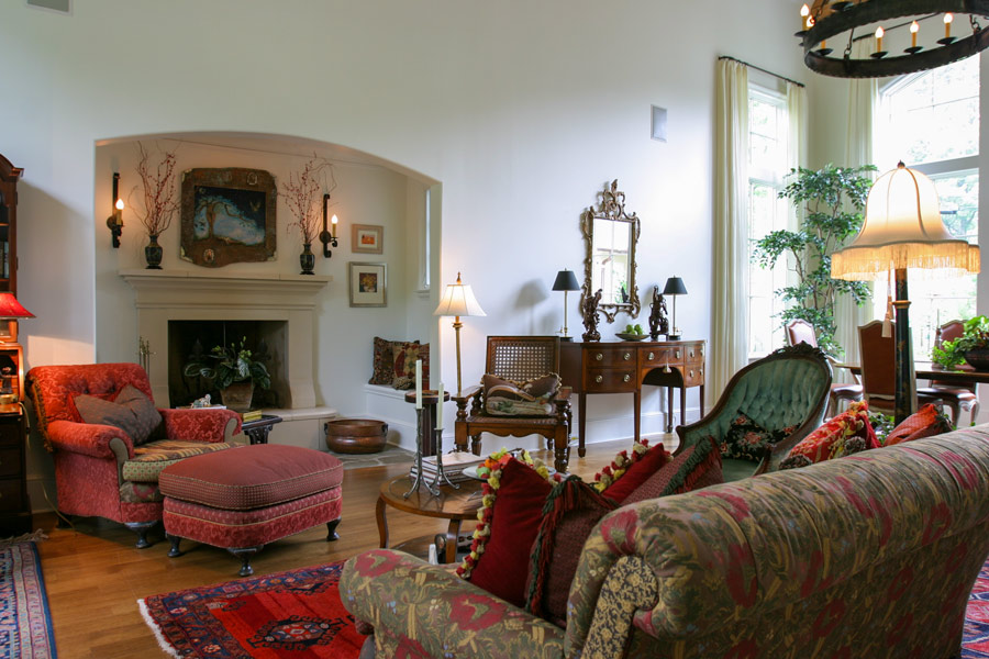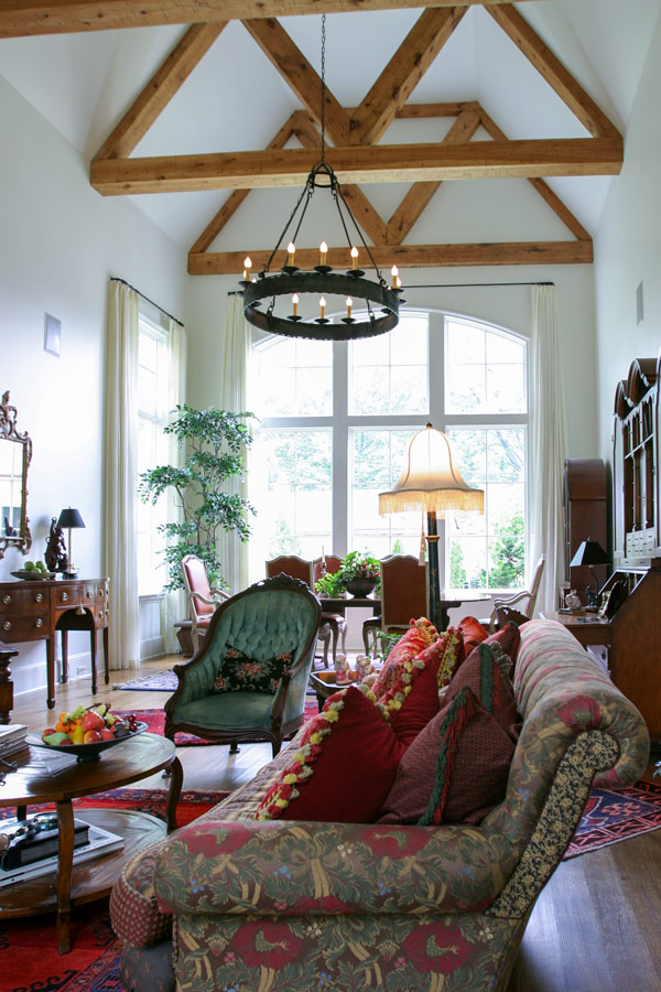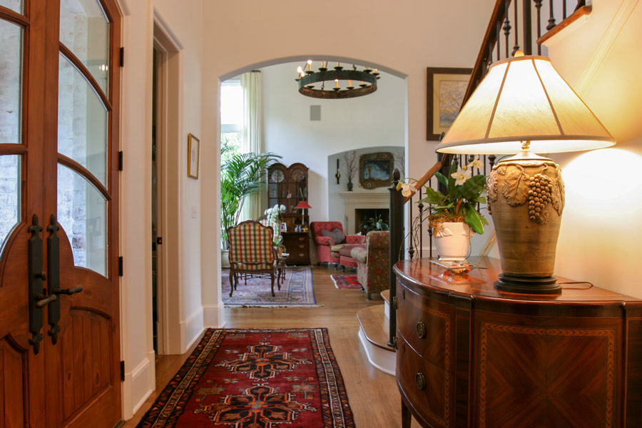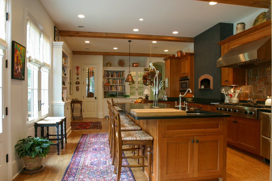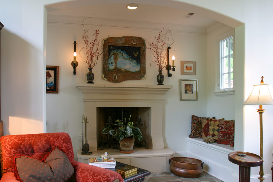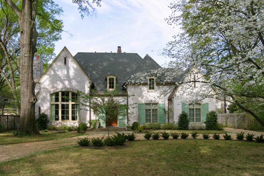 Nestled in a wooded lot in an established, park design neighborhood, this new home is similar in scale and character to the surrounding older homes and fits into the context of the street. The exterior veneer compliments the beautiful yard and highlights the existing landscape. This charm is extended into the interior which is a harmonious combination of diverse spaces. The gathering room is a tall, airy space that is designed to fill the room with sunlight, making it lively and perfect for entertaining. A large kitchen complete with a wood-burning pizza oven and a rear, covered screened porch continues the public spaces and form an exterior rear terrace. These spaces are complemented by smaller scaled niches and rooms that transition the homeowner and guest into more private, intimate settings. A modest inglenook that is tucked away off of the large gathering space resonates with the imagery of traditional English design and provides a place of escape. Click Here to see this beautiful home designed by Shapiro & Company Architects featured in Dream Homes of Tennessee.