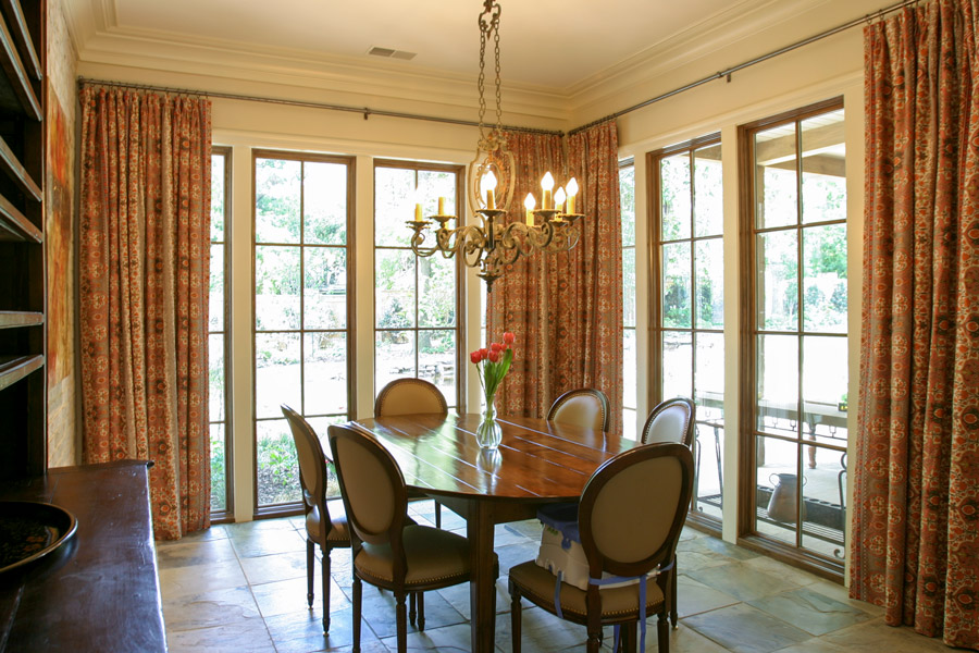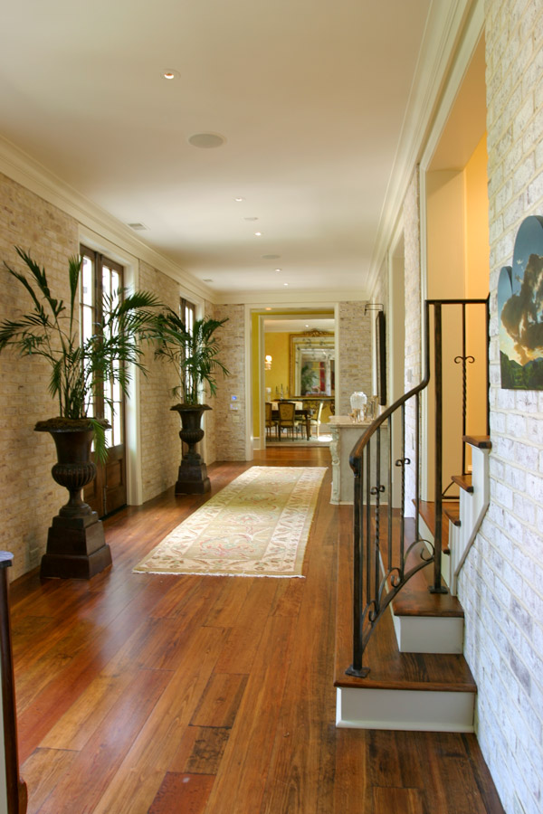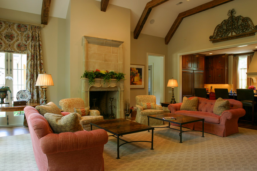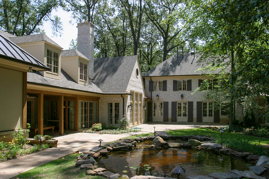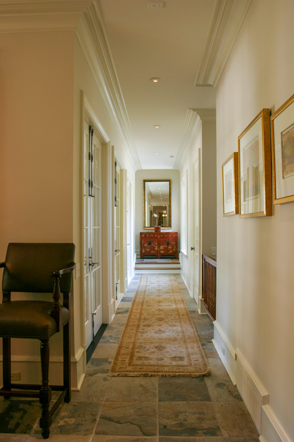 Tucked away in an established neighborhood of mature trees and deep lots, this comfortable and charming house is influenced by classic French details. Upon their arrival, guests are welcomed by elegantly wide stairs into a large receiving hall via the covered porch that serves as an entry foyer. Enlivening the family style comfort and simplicity is natural light from the windows and doors that lead to the rear outdoor spaces. The receiving hall flows into a large gallery that is lined with these windows and doors. The gallery acts as the spine of the home and is an illuminated connection between the private master suite and the public spaces of the dining room, family room, and kitchen. The gallery and these public spaces have visual and physical access to the outdoors and are continued by the rear covered porch which serves as an outdoor living space. This flow of spaces encourages casual entertaining and allows for the charm of the indoors to extend to the rear yard so that it, too, becomes a living space itself.