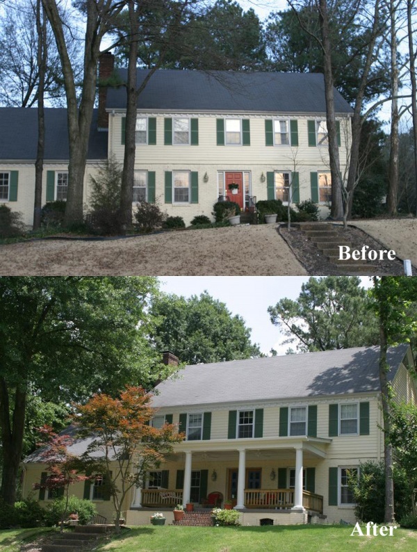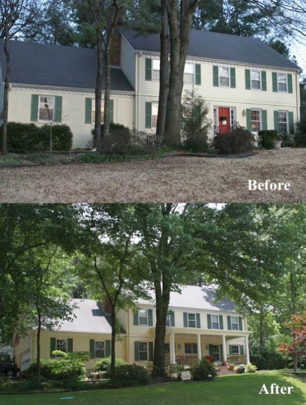 The existing house had little streetscape appeal but was located in a friendly neighborhood, where people frequently walk. The homeowners wanted to create a more pleasant streetscape view, as well as a place for them to enjoy front yard living.