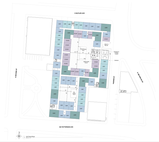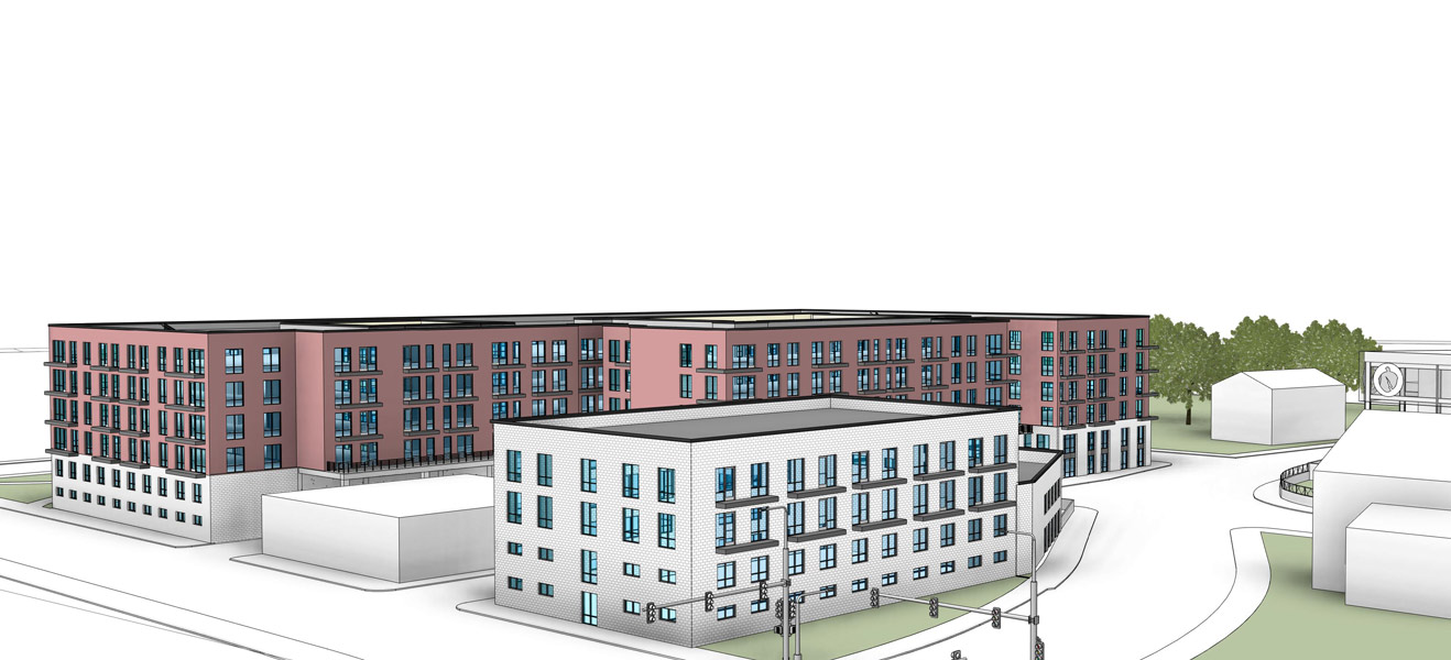 Butler Row is envisioned to set the new standard in luxury downtown living in Memphis, TN. This podium project contains mixed-use components as well as 300 apartments. The apartment units are a mix of townhome-style lofts, Studios, One-Bedroom, and Two-Bedroom units. The development will have connections to the adjacent park, pool, extraordinary fitness centers, bicycle amenities, coffee shop, and advanced automation along with a restaurant and roof-top bar. The community occupies 3.2 acres with 300 units for a yield of 90 du/a.