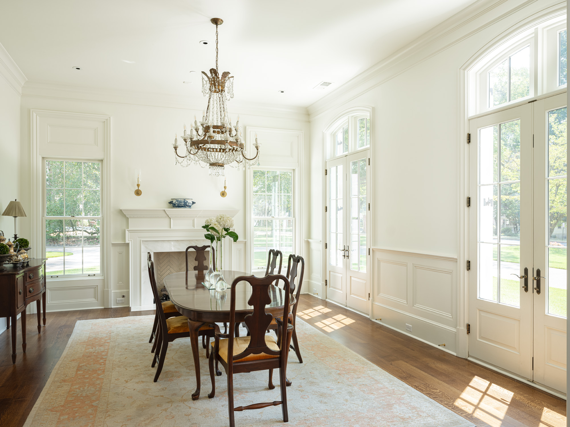 This classical French Georgian style home is located in the historic district of Hernando, Mississippi. The clients wished to keep a symmetrical façade with a formal and organized look. As well as, many views of the French-inspired courtyard.