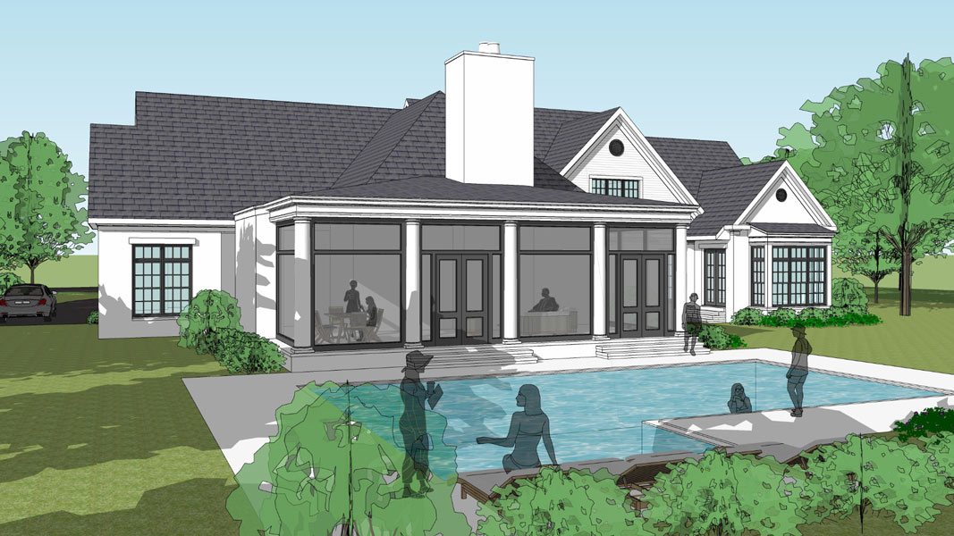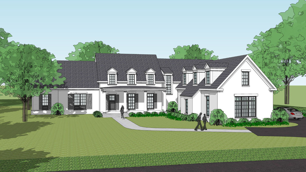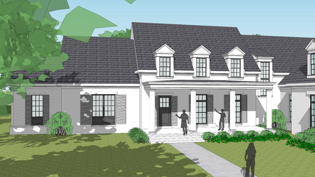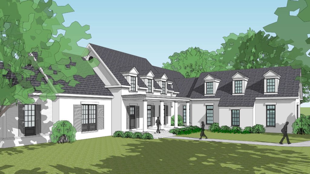 This charming one and a half story home is located outside of the historic downtown of Collierville. Given the historic surroundings, the client desired the home to fit within the neighborhood. The family also wanted an outdoor living space that blends in with the interior. Wrapping the home around a central courtyard, Covered porches flanked the front and rear to give open living spaces.
