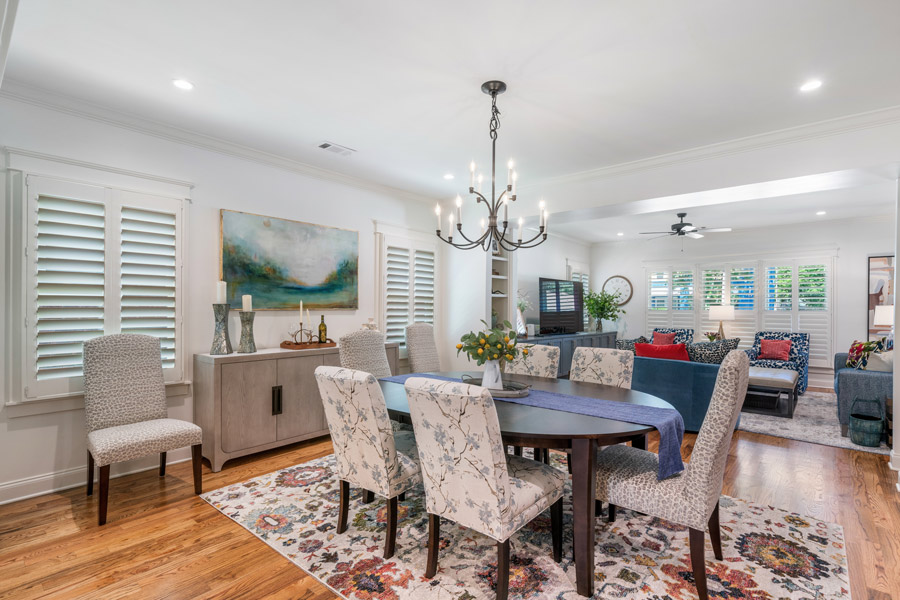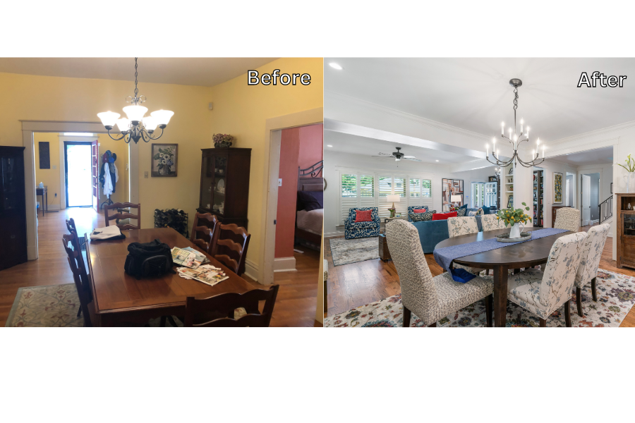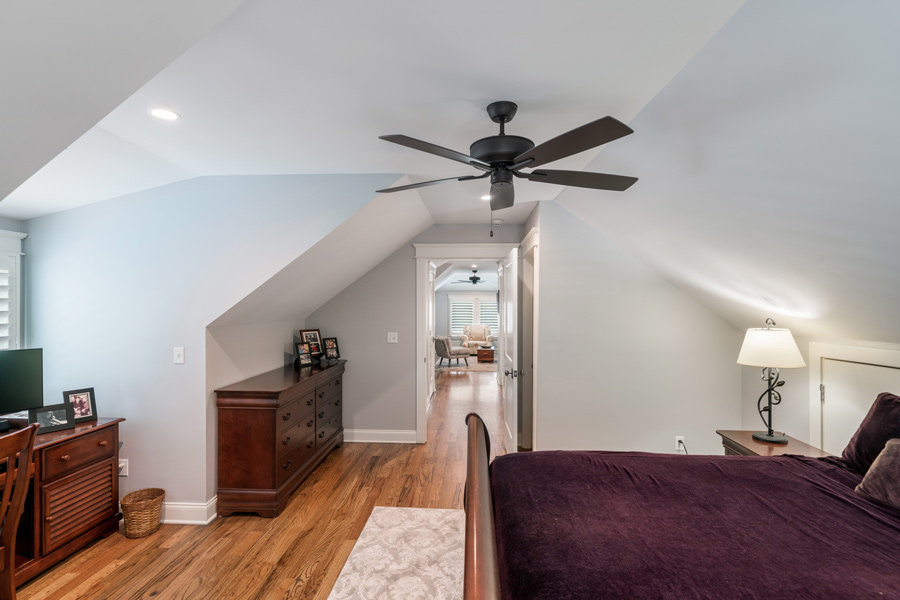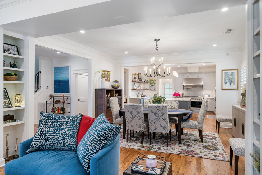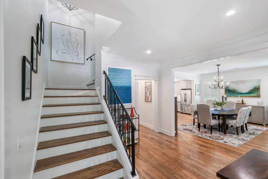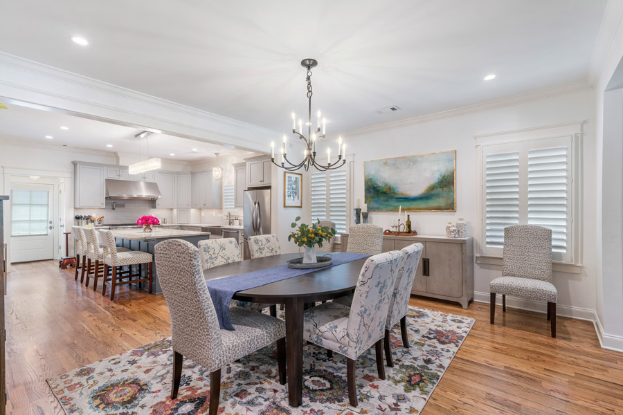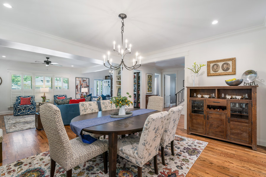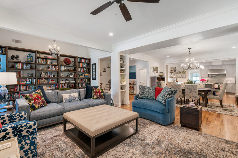 Located in the vibrant Cooper-Young Historic community, this renovation preserves the style and character of the neighborhood while creating a modern layout with exquisite details. With a focus on minimal intervention and preserving existing materials, the renovated façade gracefully showcases the historic charm of the home. With a major interior renovation that respects the existing footprint, the house shed its small, separate rooms to embrace an open flow on the first floor, creating a perfectly inviting space for friends and family. The foyer has been reconfigured to provide the addition of a workout room and a large bookshelf for the client’s extensive book collection. Built-ins like the bookshelf surround the living & dining areas, increasing functionality and appeal. The kitchen has been fully updated with a modern layout, with the addition of an island for more cooking space and storage, and the laundry closet is now a dedicated laundry room. The primary suite has been relocated as well to allow for a spacious walk-in closet, built-in shelving for extra dresser space, and an updated bathroom. A beautiful strategically placed stair provides seamless access to the newly designed second floor, where an unfinished attic space has been transformed into a haven with a living area, a new bathroom, and two bedrooms, complete with walk-in closets, dormers, vaulted ceilings, and charm.