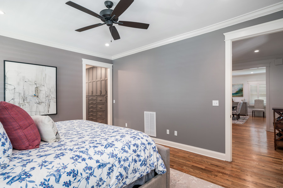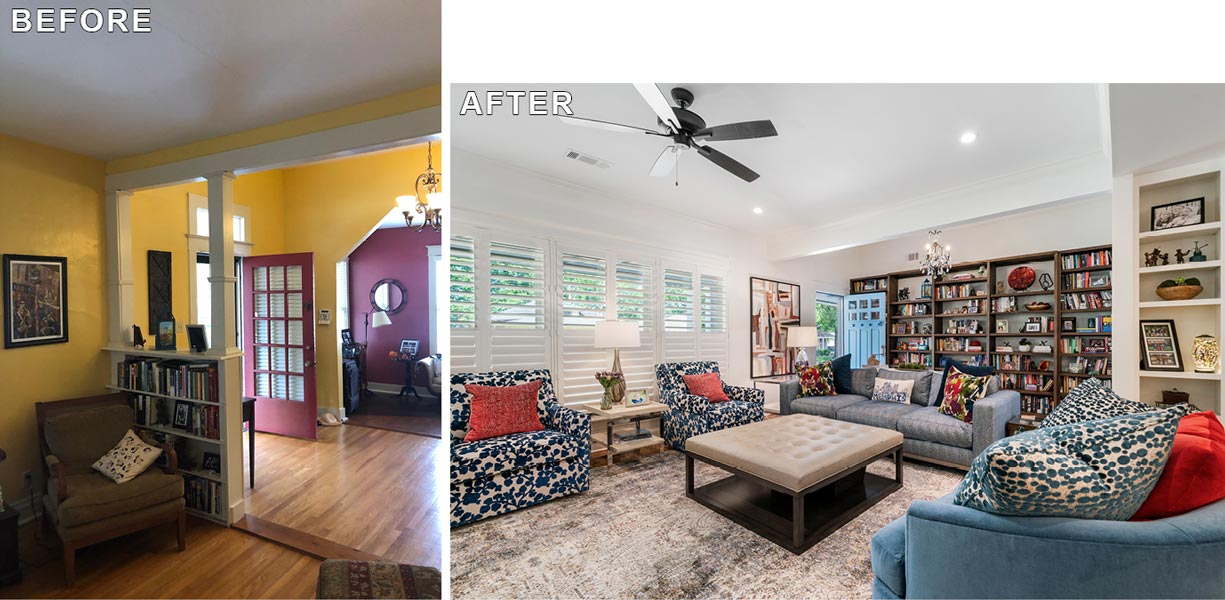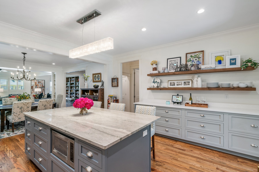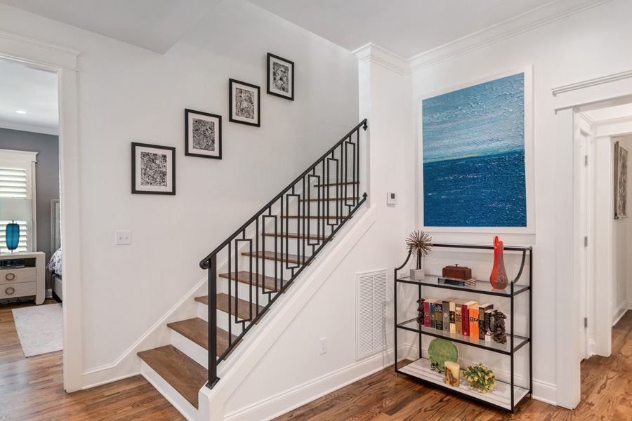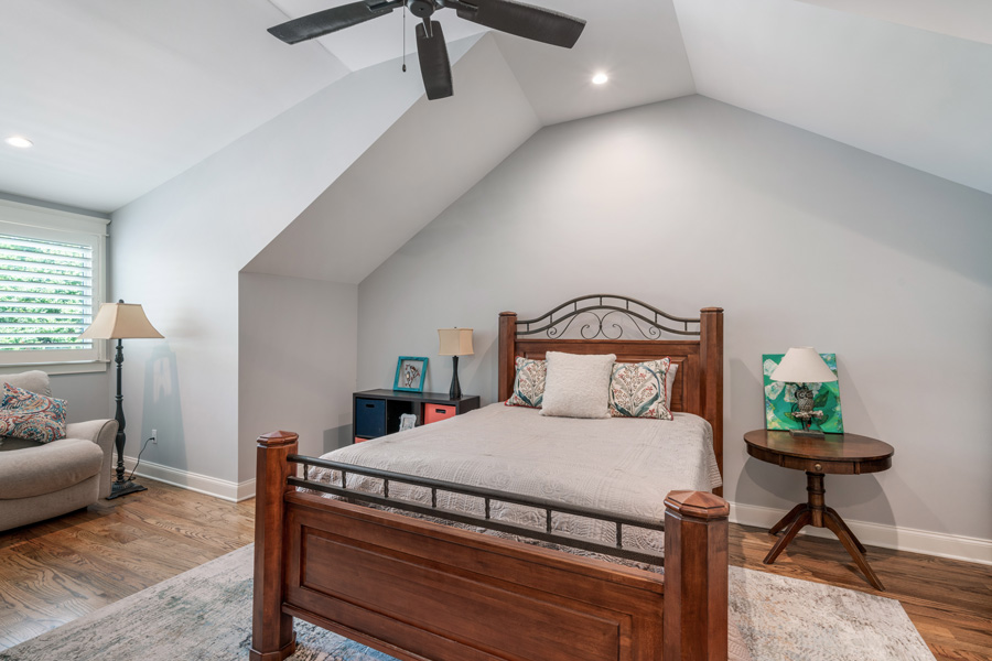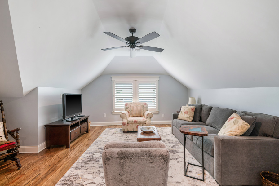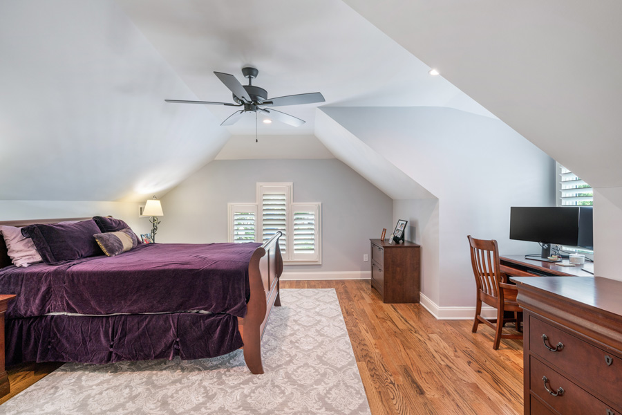Located in the vibrant Cooper-Young Historic community, this renovation preserves the style and character of the neighborhood while creating a modern layout with exquisite details. With a focus on minimal intervention and preserving existing materials, the renovated façade gracefully showcases the historic charm of the home. With a major interior renovation that respects the existing footprint, the house shed its small, separate rooms to embrace an open flow on the first floor, creating a perfectly inviting space for friends and family. The foyer has been reconfigured to provide the addition of a workout room and a large bookshelf for the client’s extensive book collection. Built-ins like the bookshelf surround the living & dining areas, increasing functionality and appeal. The kitchen has been fully updated with a modern layout, with the addition of an island for more cooking space and storage, and the laundry closet is now a dedicated laundry room. The primary suite has been relocated as well to allow for a spacious walk-in closet, built-in shelving for extra dresser space, and an updated bathroom. A beautiful strategically placed stair provides seamless access to the newly designed second floor, where an unfinished attic space has been transformed into a haven with a living area, a new bathroom, and two bedrooms, complete with walk-in closets, dormers, vaulted ceilings, and charm.