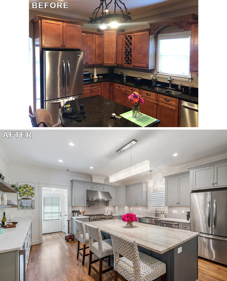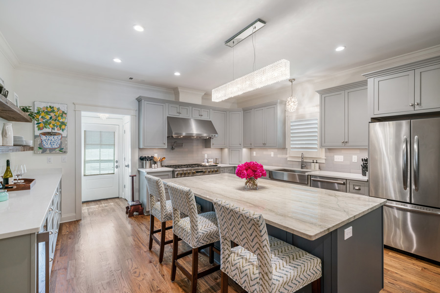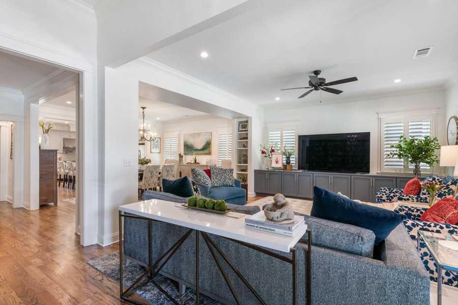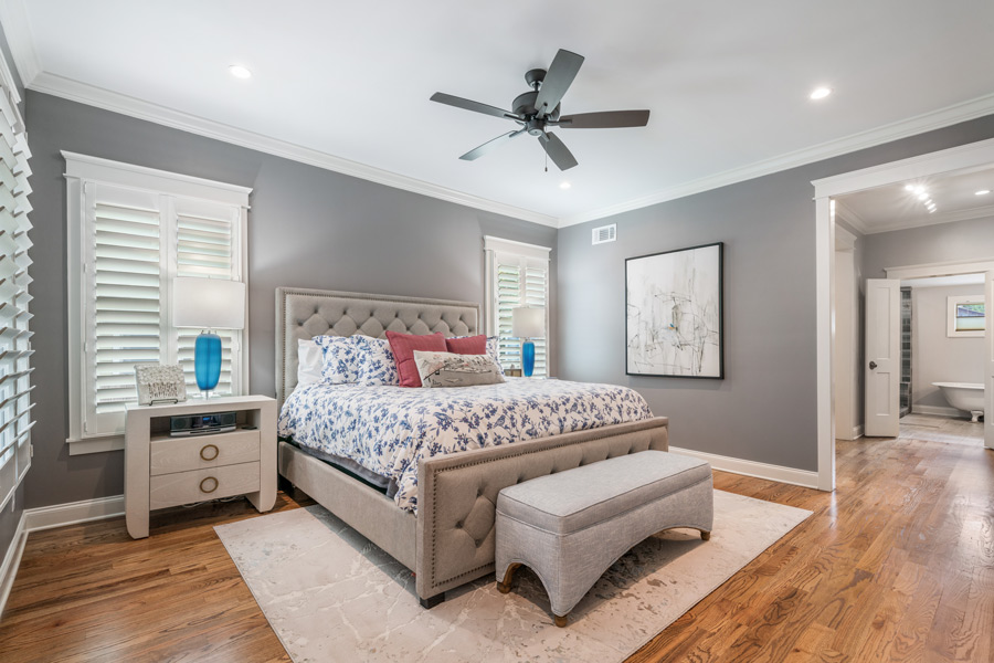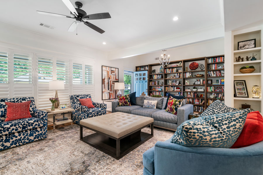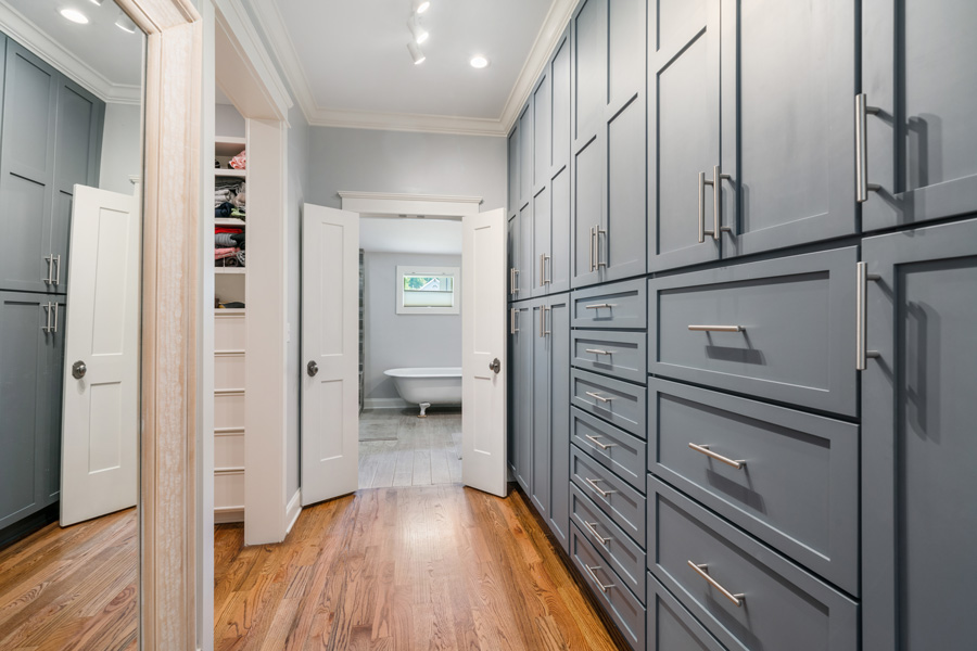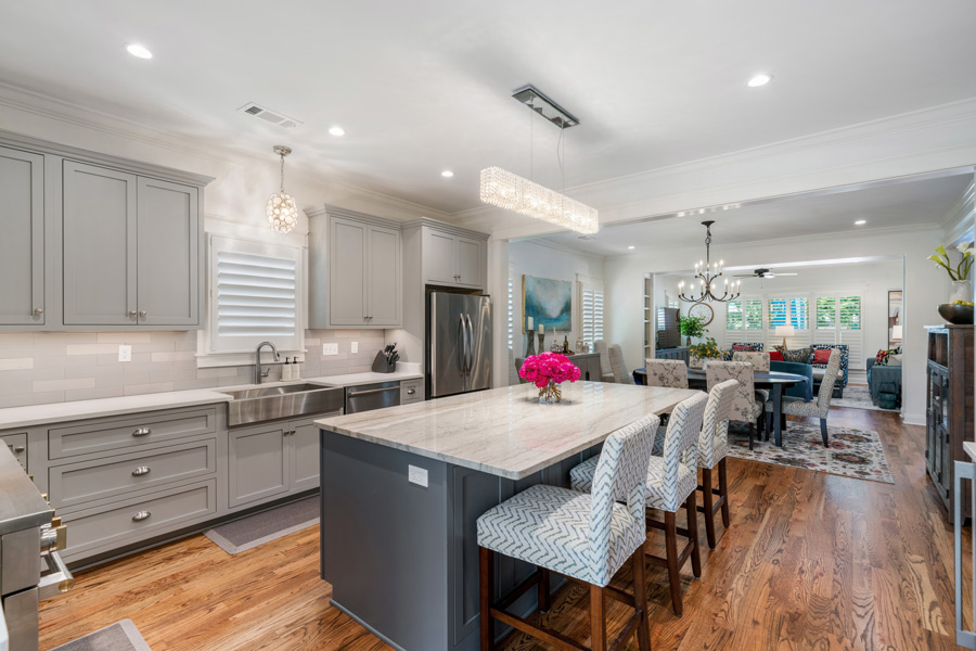 Located in the vibrant Cooper-Young Historic community, this renovation preserves the style and character of the neighborhood while creating a modern layout with exquisite details. With a focus on minimal intervention and preserving existing materials, the renovated façade gracefully showcases the historic charm of the home. With a major interior renovation that respects the existing footprint, the house shed its small, separate rooms to embrace an open flow on the first floor, creating a perfectly inviting space for friends and family. The foyer has been reconfigured to provide the addition of a workout room and a large bookshelf for the client’s extensive book collection. Built-ins like the bookshelf surround the living & dining areas, increasing functionality and appeal. The kitchen has been fully updated with a modern layout, with the addition of an island for more cooking space and storage, and the laundry closet is now a dedicated laundry room. The primary suite has been relocated as well to allow for a spacious walk-in closet, built-in shelving for extra dresser space, and an updated bathroom. A beautiful strategically placed stair provides seamless access to the newly designed second floor, where an unfinished attic space has been transformed into a haven with a living area, a new bathroom, and two bedrooms, complete with walk-in closets, dormers, vaulted ceilings, and charm.