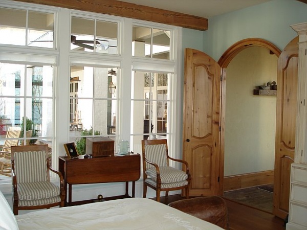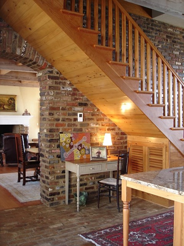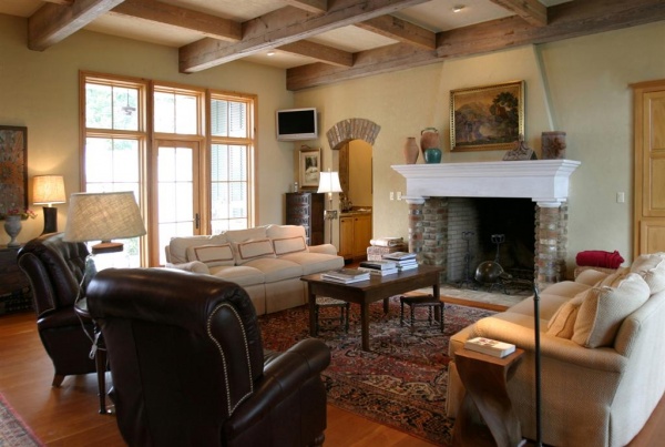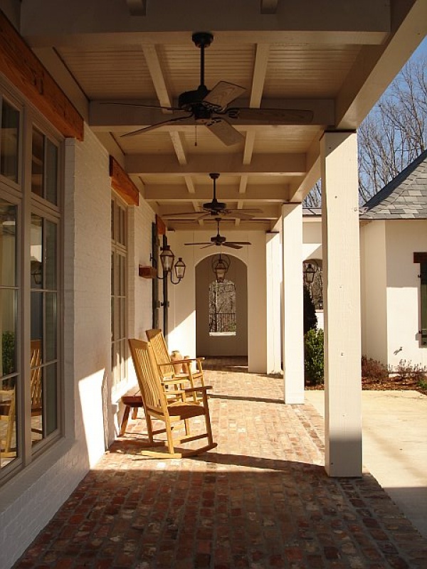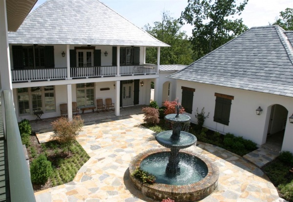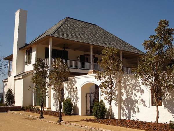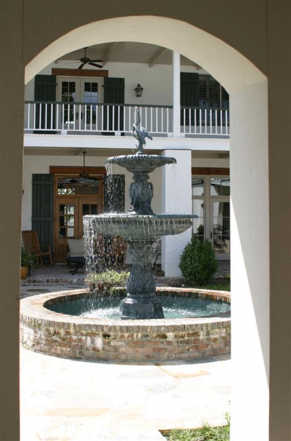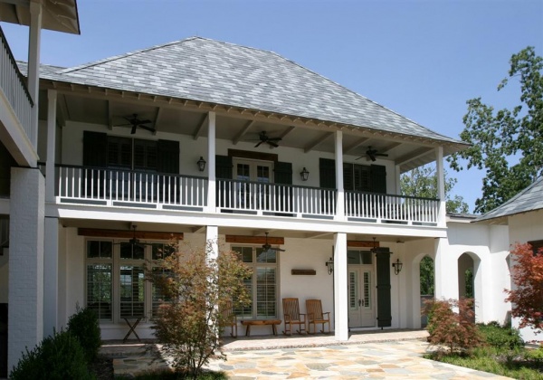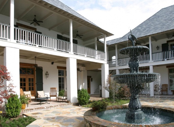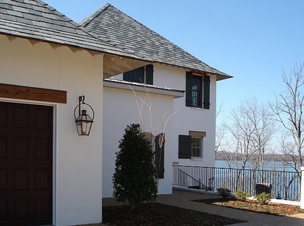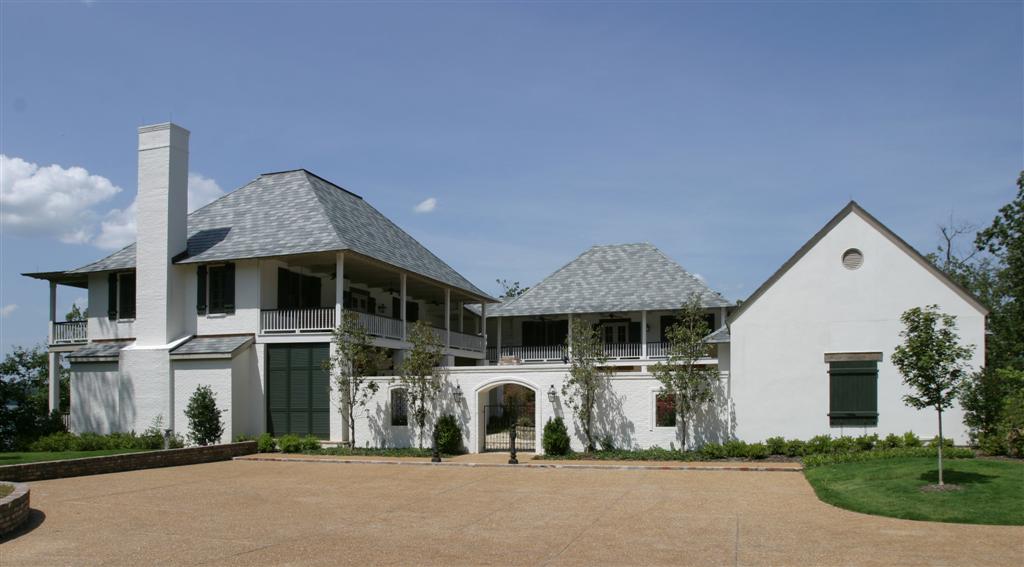 A family whose roots are in Southern Louisiana desired a home on the water that reflects the long tradition of French-influenced design built with native materials. The home, with its surroundings and secondary buildings, is an interpretation of early plantation design that has been adapted to the humid and windy waterfront environment through its use of low volumes with deep overhangs. There are three main volumes whose U- shape forms an interior courtyard. Each wing boasts authentic Creole detailing, hand-crafted rafter tails, and a variety of materials including old reclaimed brick and hand-applied stucco that adds texture and craftsmanship. These details animate the simple language of the design. Each wing of the house (one public, one private, and one a woodshop for the owner) overlooks the central courtyard on one side and has views out to Lake Wilson on the other, more private side. The homeowners frequently entertain and have overnight guests in town. The design graciously accommodates each guest with a sense of privacy and environment as each room has outdoor porches and private living areas. The public wing is flanked by deep porches on either side which promote outdoor entertaining or serve as a quiet, reflective area, and provide Southern sensibility as places to cool off from the breezes of the water.