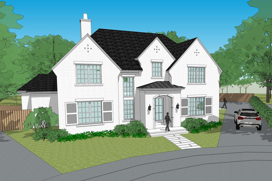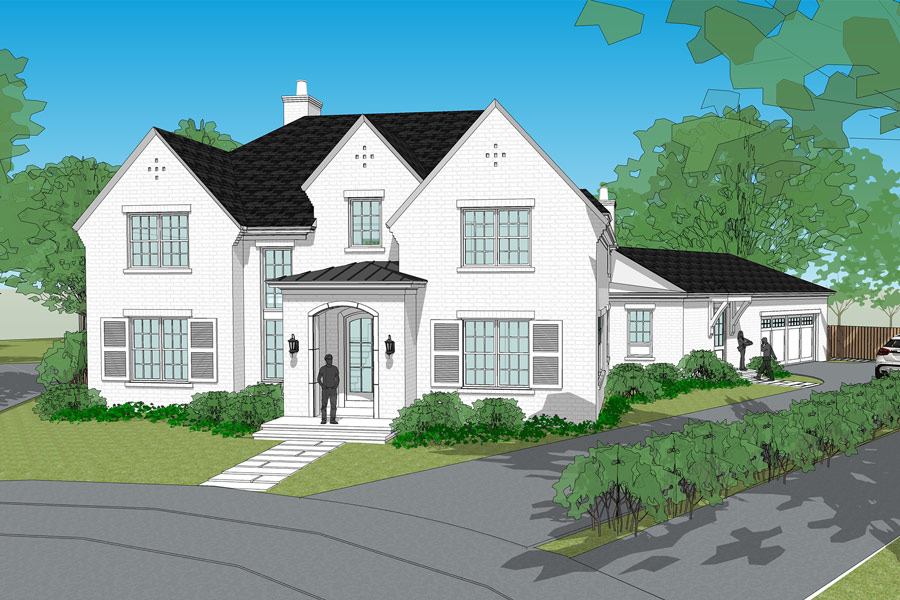 Located in a quiet cove in East Memphis, this timeless and intimate residence exudes craftsmanship and attention to detail in all architectural and materials design choices. The footprint and layout are designed to maximize the lot area and rear yard enjoyment, with the friend’s entry located in a wing oriented diagonally towards the house. The cozy front entry, with a limestone surround, pulls the guests into the foyer characterized by floor to ceiling 2 story windows.