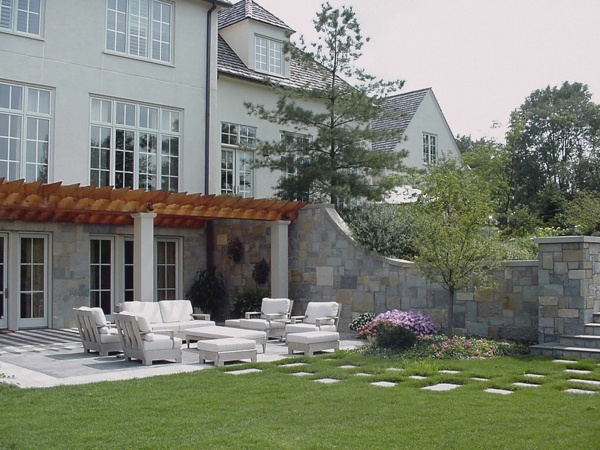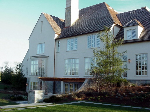 This European influenced residence was designed for a family who frequently travels abroad. Inspired by the countries they have visited, the homeowners desired a design that is a satisfying combination of European tradition with a modern flair. The design is rooted in classical principles but overlaid with light contemporary details through art and furnishings. Shapiro and Company designed the floor plan in such a way as to allow the individual rooms to slowly be revealed as one moves through the house. An element of exploration and discovery gives each space the opportunity to present itself in a timely fashion. Though each room adheres to a common theme of being bathed in natural light and offering a peaceful attitude with calming decor, there is also a variety of uses and character that is typical of a European estate. The breakfast area and sitting room look to the vast terraces and open space of the rear of the property, a handsome study encourages private reflection, and a grand music room stands ready for an impromptu concert among friends. A rear terrace shaded by a pergola is in step with the interior feel of the house. Fashionable in its decor, yet lending an air of comfortable functionality, this outdoor space opens the door to palatial terraces and gardens beyond. Shapiro & Company Architects was selected to design the overall project as well as the interior architectural details. Please view additional photographs in the residential interiors section.