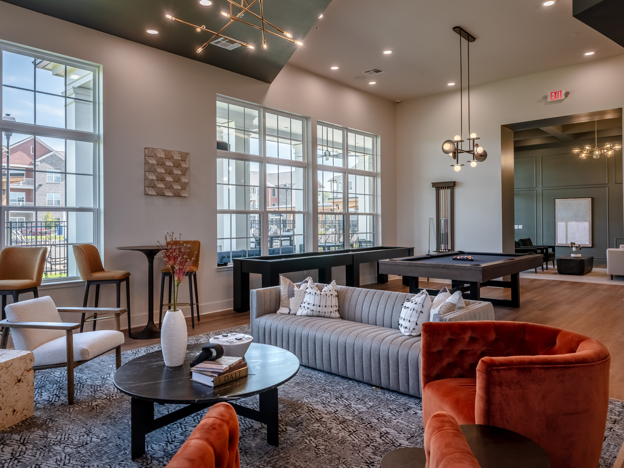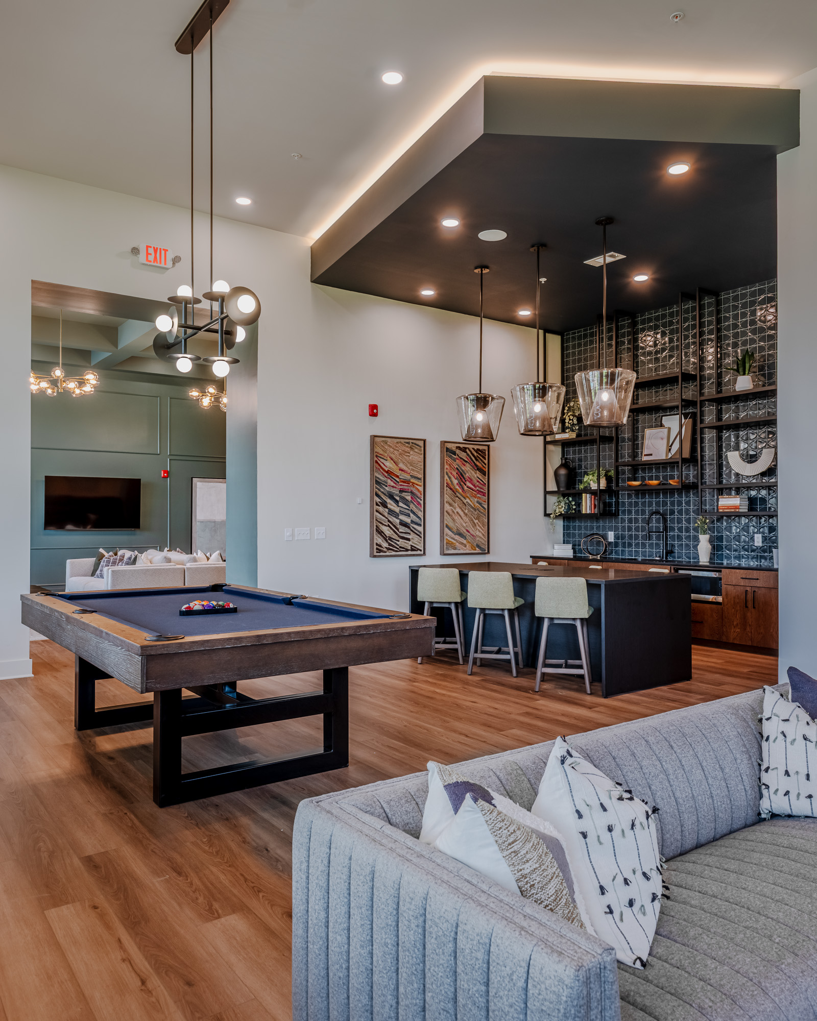 This new apartment community is located in Cordova, TN with close access to the surrounding & sought-after Memphis, Germantown, and Collierville communities. The 3-story buildings hold 1-, 2-, and 3-bedroom apartments for a total of 310 units. The expansive clubhouse and resident lounge features a state-of-the-art fitness center with yoga area, shuffleboard, billiards, a coffee station, kitchenette, pet spa, and business lunge with private meeting rooms. Residents can enjoy the outdoors with a resort-style pool with sundeck, cabanas, and game area. We are also proud to be the Interior Designers- click here to see more.