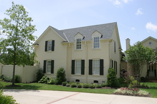 The client for the existing house, to the right with the porch-over-porch entry, asked Shapiro & Company to design an addition with a four-car garage, office, playroom, media room, and guest bedroom. Shapiro & Company was sensitive to the fact that directly attaching such a structure to the existing residence would create an over-scaled addition. Therefore, Shapiro & Company designed the addition as an almost detached looking structure, while creating a courtyard between the two buildings, which can be seen from the family room and playroom.