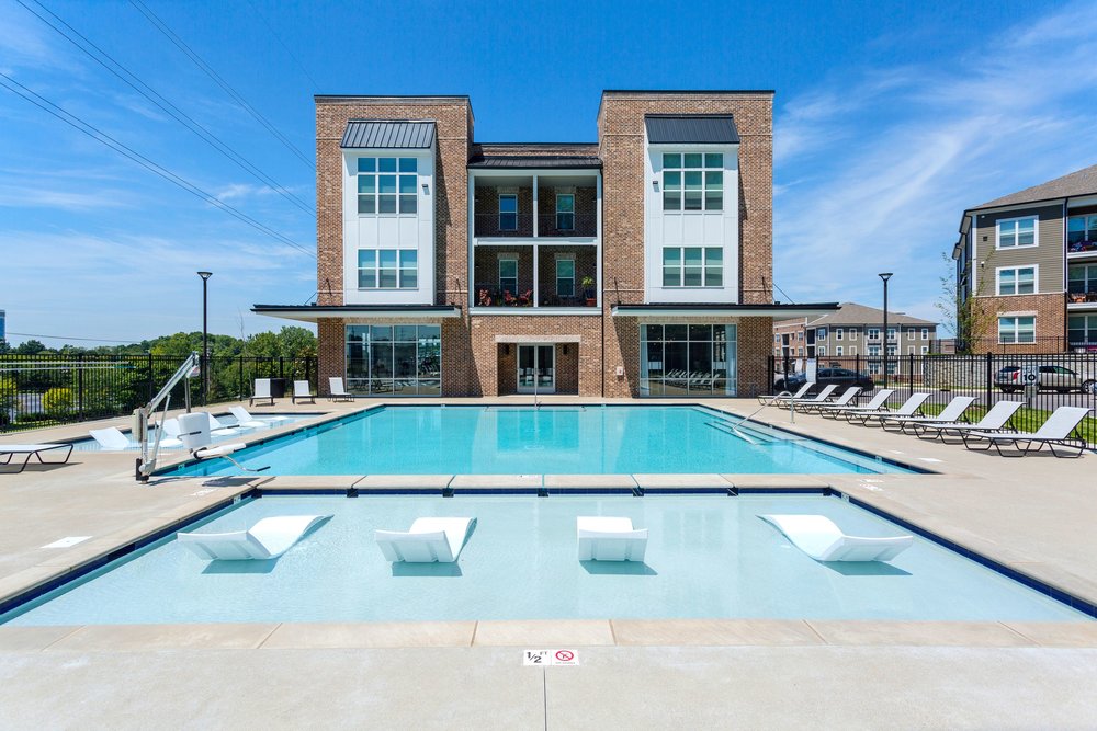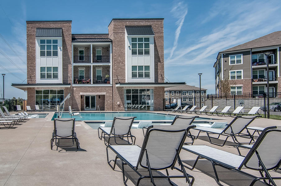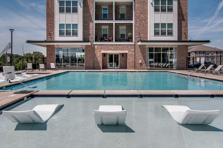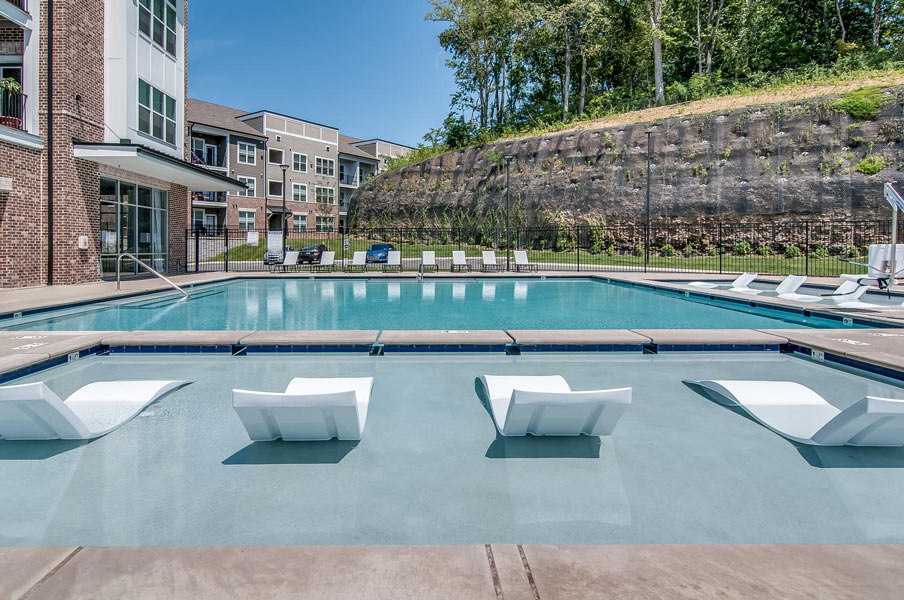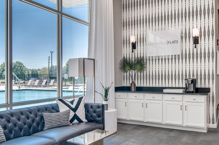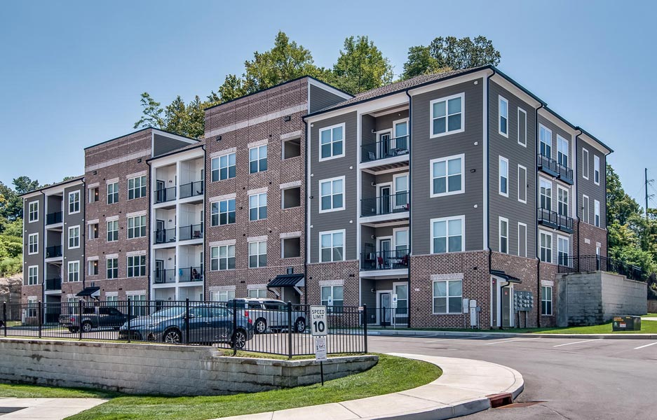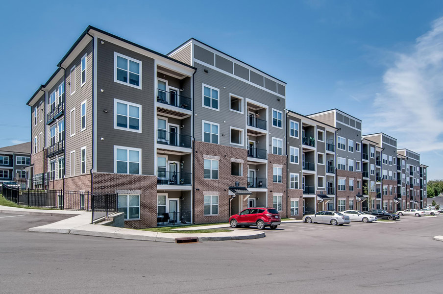 Hermitage Flats is located on Old Hickory Blvd. in Hermitage, Tennessee outside of Nashville. This project consists of seven buildings and 267 units built on a challenging grade of steep slopes with a tree preservation requirement. It is a mix of 3 and 4 story buildings with an integral Leasing Office and Clubhouse. Creating access to the primary street was a challenge but it sits on top of a highly visible hill, making the project visually prominent.
