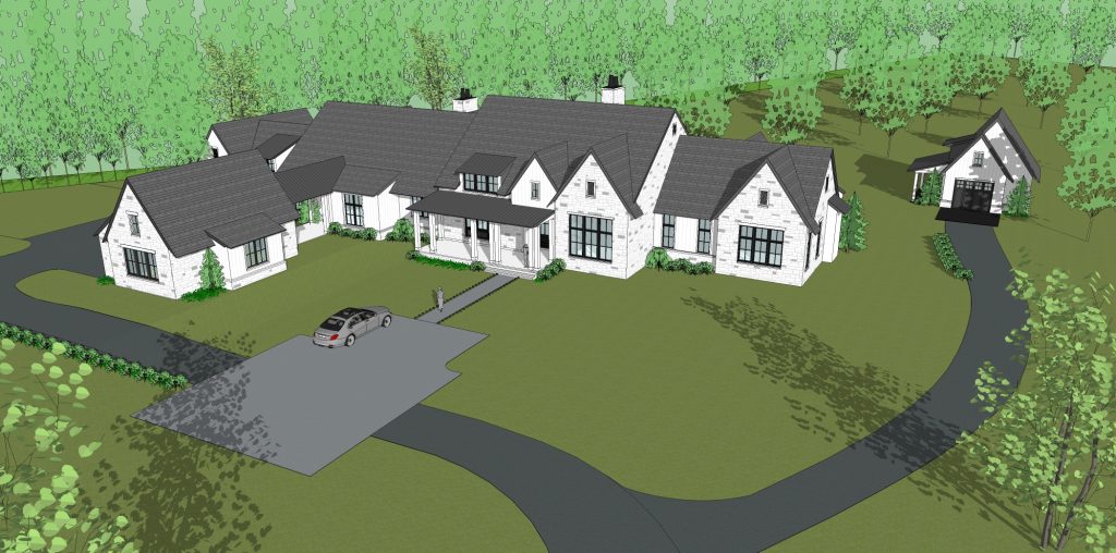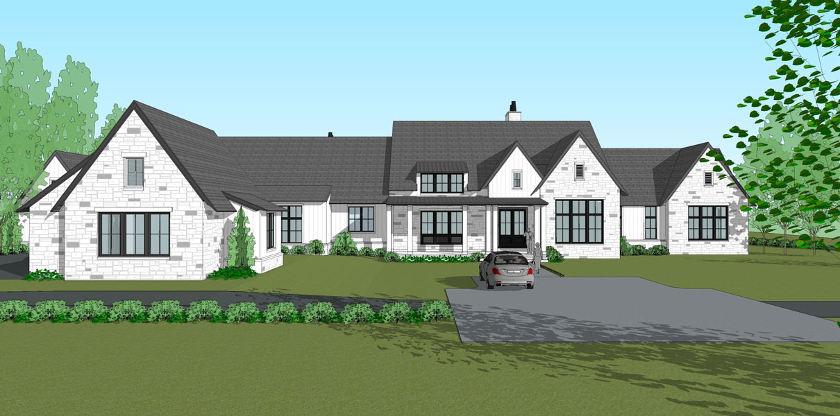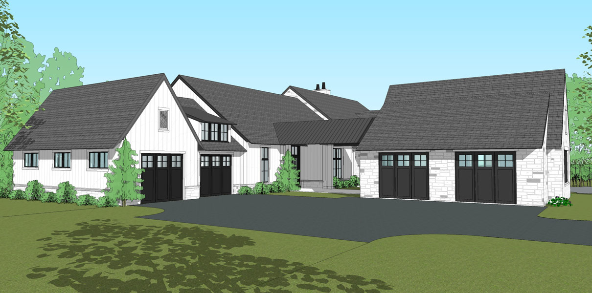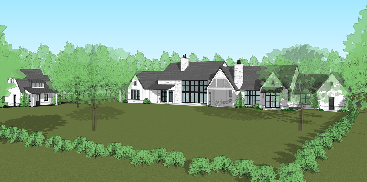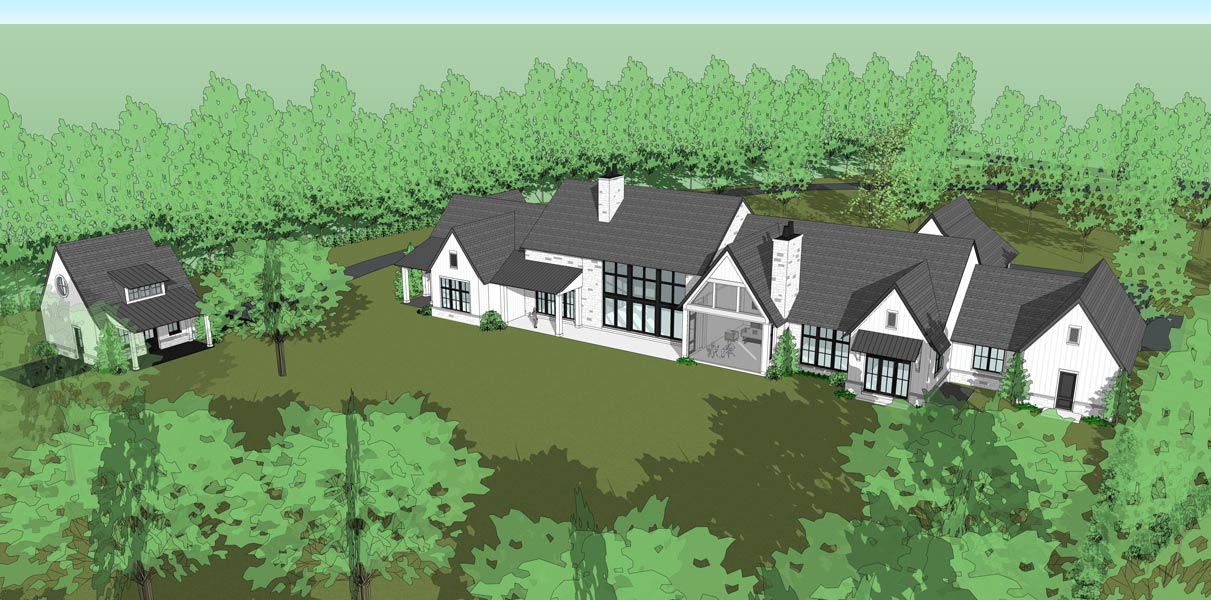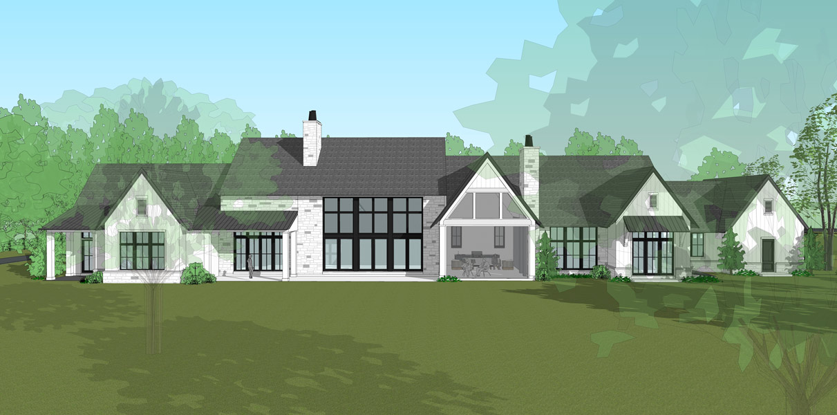 This hillside estate nestled in the natural landscape of southwestern Pennsylvania is the forever home of two retirees returning to their home state. The modern farmhouse style home showcases expansive views to the rolling meadows that the property holds. With two smaller, more intimate covered porches, one larger screened porch, and a wall of windows in the family room, the outdoor connection is captured all throughout the rear of the home for year-round scenery. The one-story home features over 12 foot vaulted ceilings in the family room, adorned with natural wood beams. Both husband and wife wanted spaces of their own within the home, so a study for him and art studio for her were added. The basement is the primary storage location, but also holds a golf simulator. A separate structure accomodates the need for gardening space and storage.