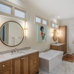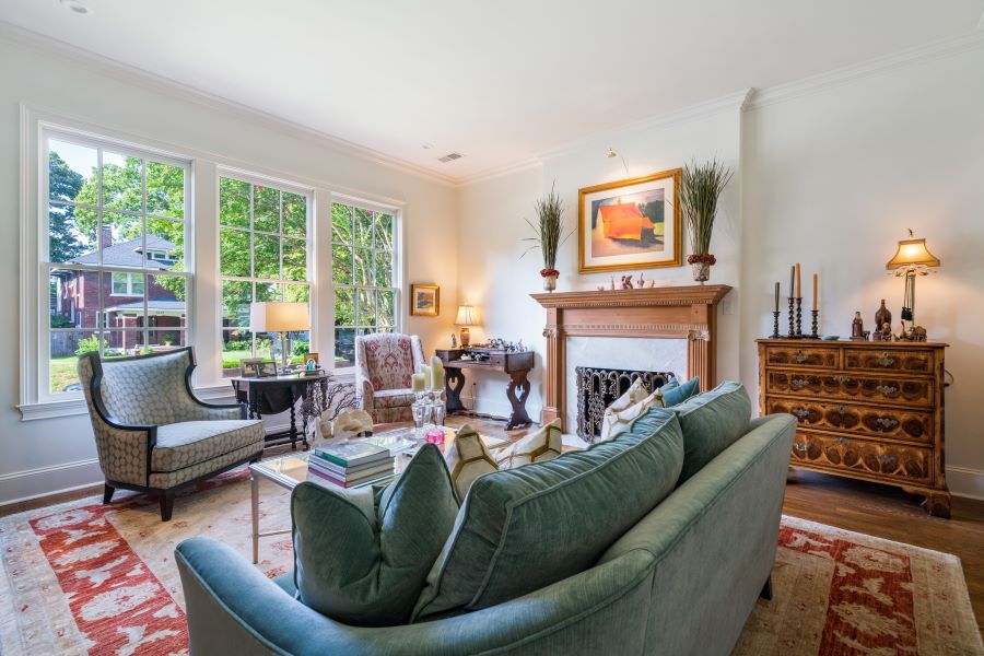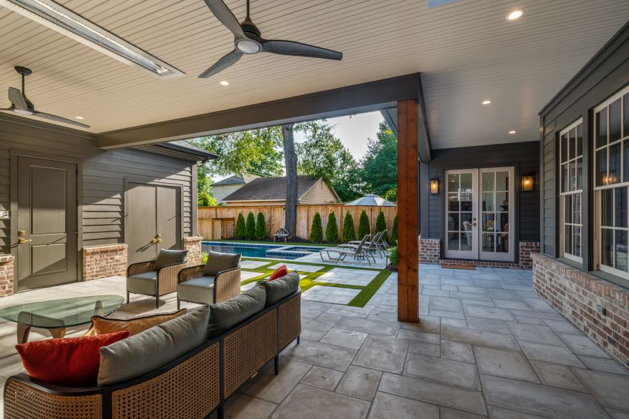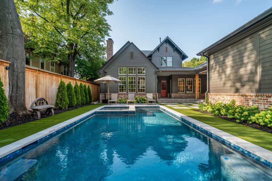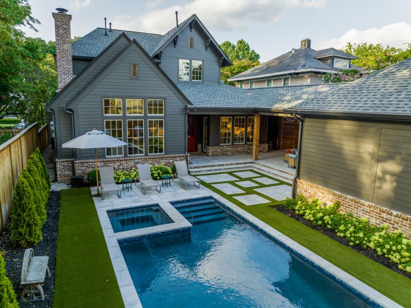 Our clients love the dynamic lifestyle and architecture of this 1920s-era, Midtown neighborhood. Working within the Historic Central Gardens District design guidelines, we created a new home that responded to our client's desires for modern living in a historical context. The exterior is inspired by historic English Tudor homes that can be found in the neighborhood. Upon entering the home, an impressive formal living room and dining room welcome guests with naturally lit spaces that capture views of the tree-lined street. Moving toward the back of the house, the Kitchen and Bar area opens up to the vaulted Family room for a modern living experience. The primary suite, located on the ground floor, was carefully designed to create a luxurious retreat for the owners. A shaded covered porch connects the interior spaces to the garage and helps define the courtyard. The floor plan allows the Family Room, Kitchen, and Primary Suite to enjoy views of the private garden and pool. Using appropriate materials, tall ceilings, and large expanses of windows creates an overall uplifting home experience that fits nicely in the historical context while remaining a unique reflection of our client's personality.