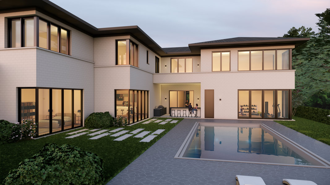 This hidden retreat offers a peaceful sanctuary amid the hustle and bustle of the city. Positioned at the highest point of the property, this contemporary home boasts breathtaking scenery of the tree-filled property, creating a sense of tranquility and seclusion. Upon arrival, the family and guests experience a stunning vantage point overlooking the property. As you make your way to the entrance, the 2-story, floor-to-ceiling glass entry is revealed, giving a glimpse into the elegance that awaits within. The 2-story foyer with a grand floating stair gives a glimpse of the family room, where floor-to-ceiling windows offer sweeping views of the property’s natural elements. Designed to embrace Vastu principles, the home is harmoniously arranged to allow desired energy through strategic window placement and room orientations- creating a balanced, positive atmosphere. This residence was designed to cater to a large family that loves to entertain, accommodating friends and family for all occasions with multiple gathering spaces. This sanctuary harmonizes luxury, tranquility, and convenience in the heart of the city.