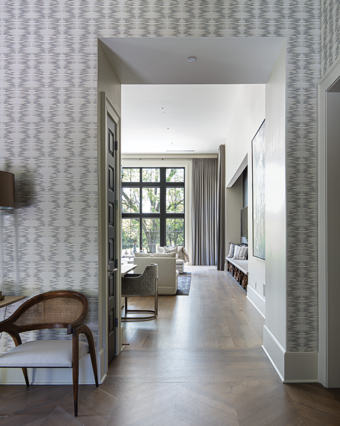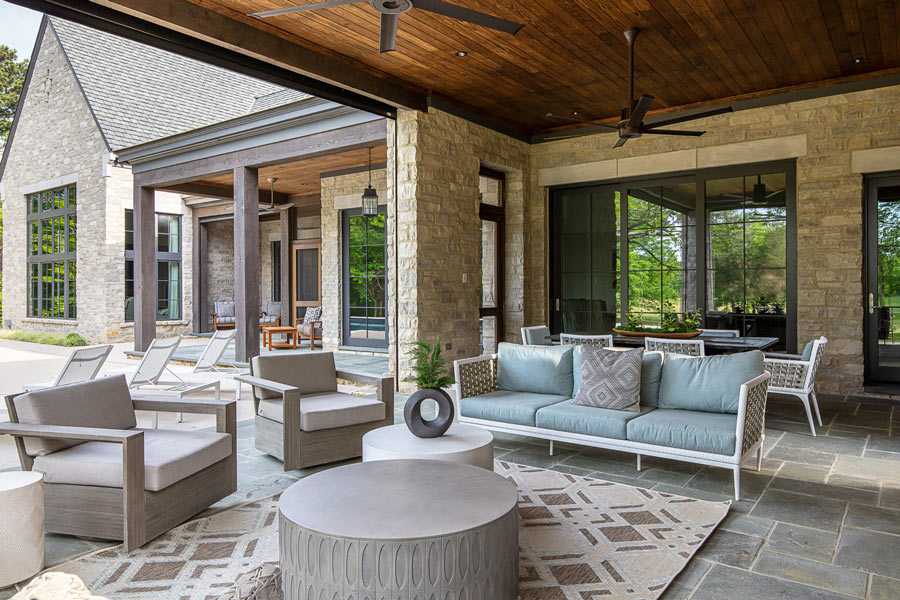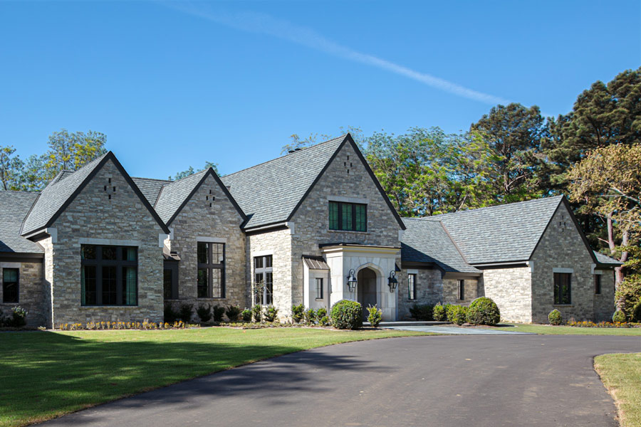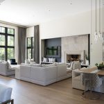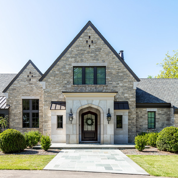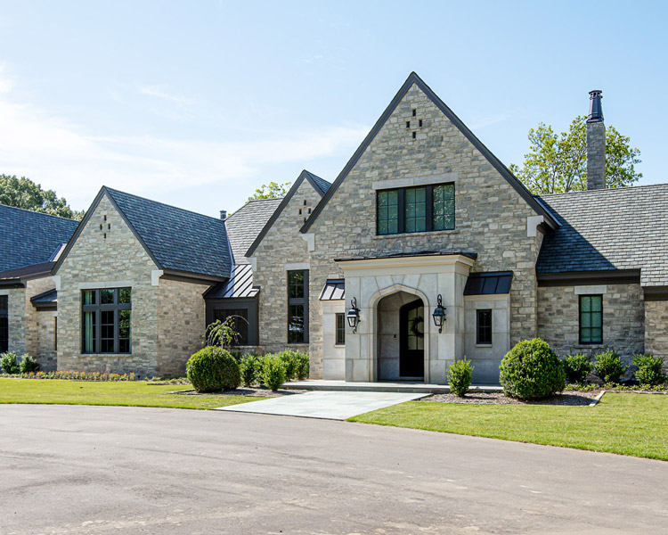 This country estate was inspired by the stone cottages doting the beautiful English Cotswolds. With a large parcel of land, the design of the house was stretched along the east – west axis to maximize the natural light and views of the serene setting. Main spaces were created with offsets to allow multiple walls of windows and combining this effect, tall ceilings with floor to ceiling windows allow the natural light to be dispersed throughout the house.