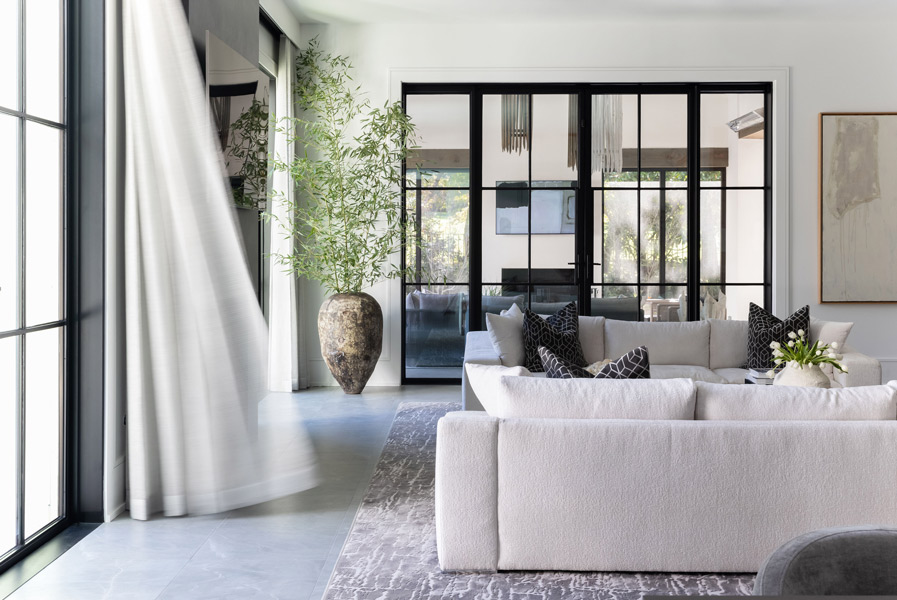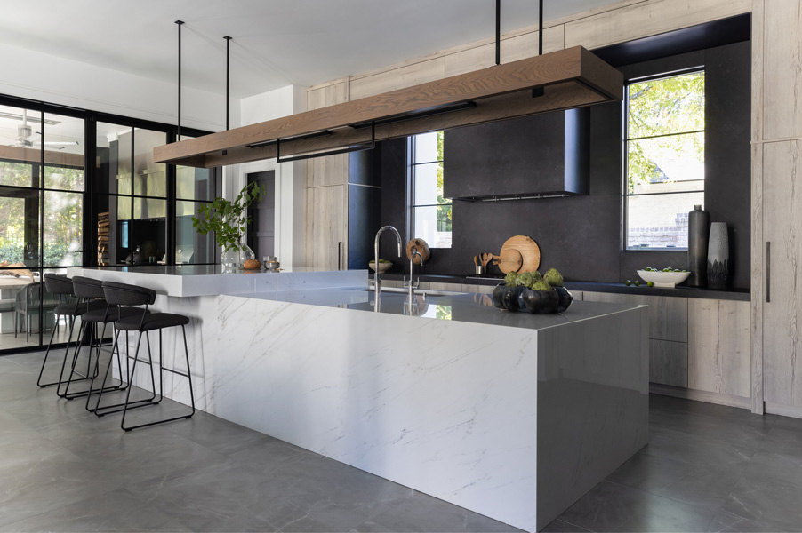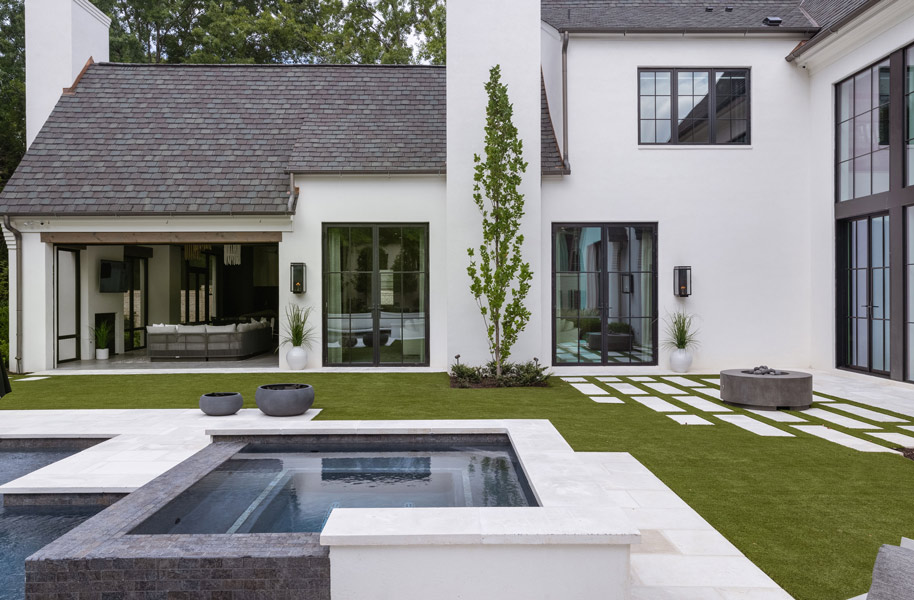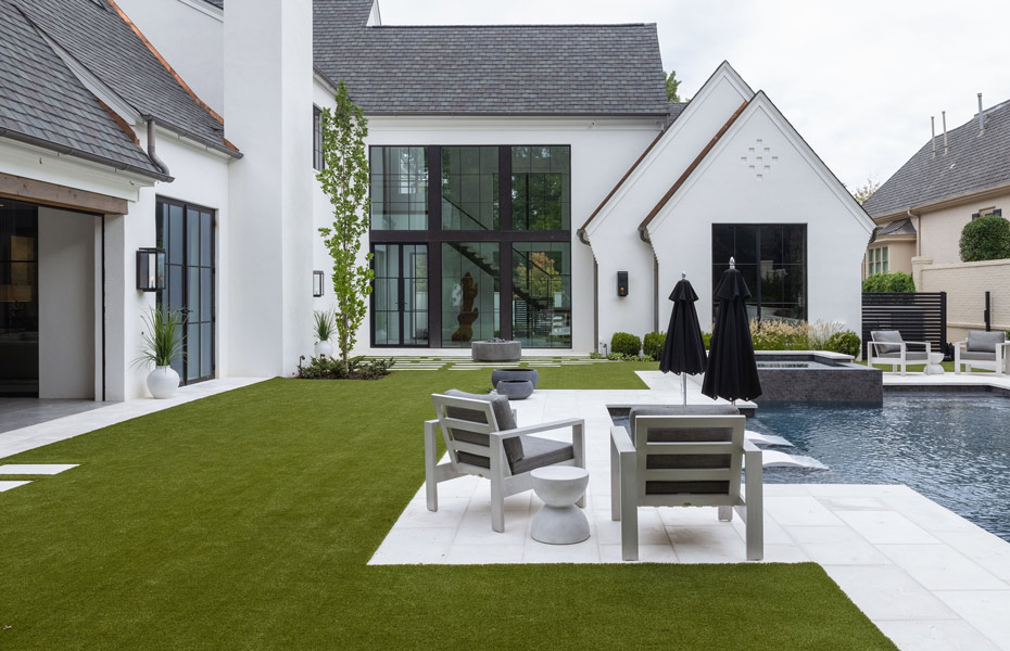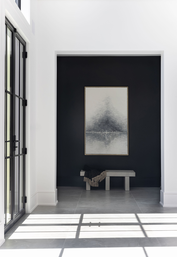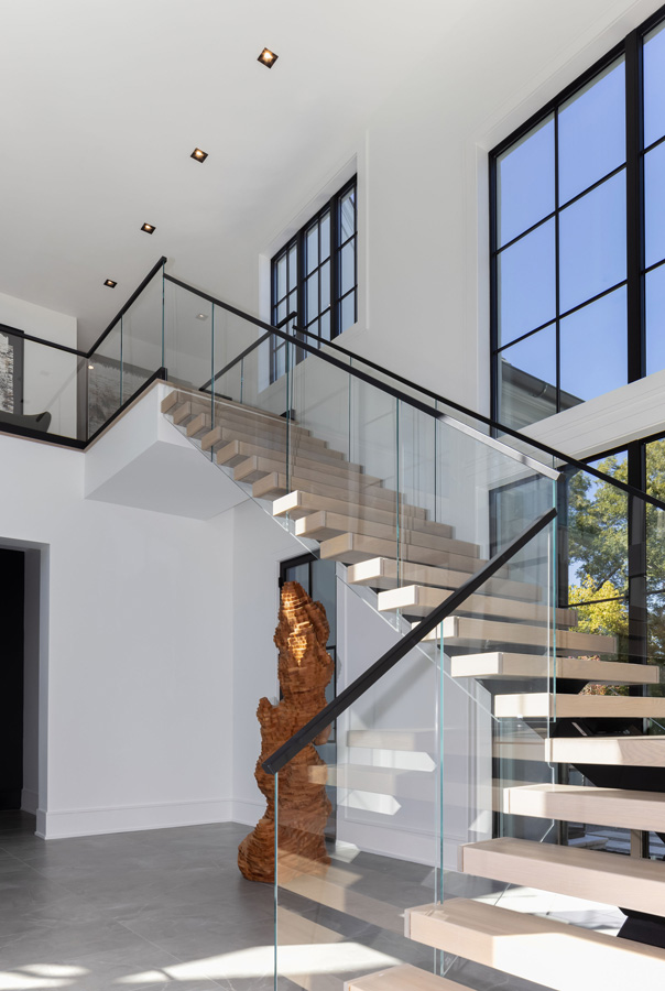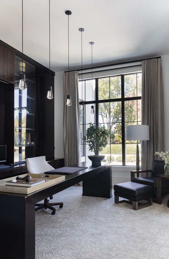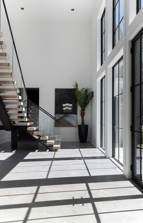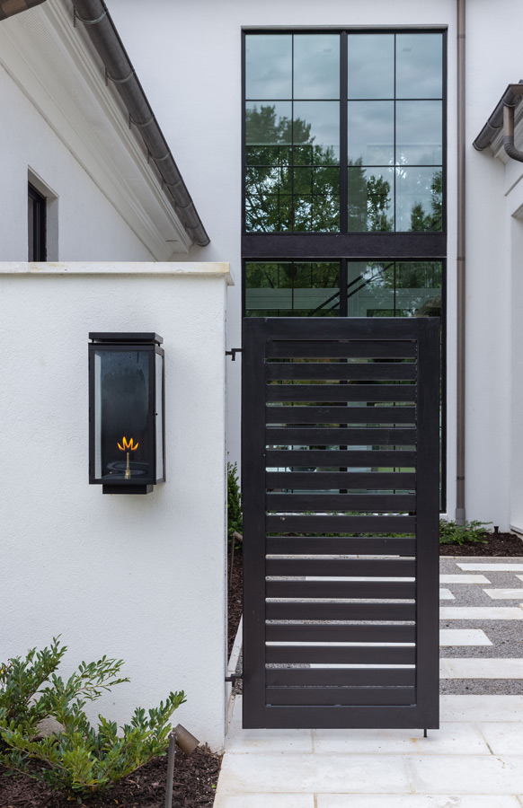 Nestled in a mature neighborhood of more traditional homes, this home was designed to be harmonious with its neighbors yet be distinguished with a modern interpretation of traditional forms. Guests are introduced to the interior by first moving through a beautifully landscaped courtyard. The visual and physical connection between the interior and exterior is constantly on display throughout the entire home. The rooms were pulled apart to create interest and allow natural light to flow in all spaces. This design concept allows the spaces to slowly and elegantly reveal themselves.