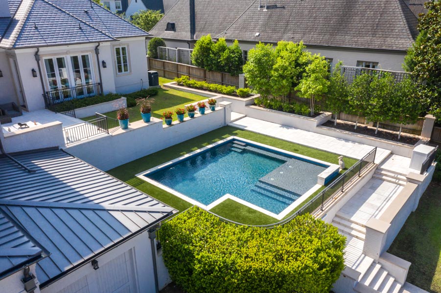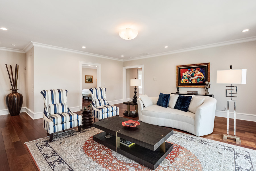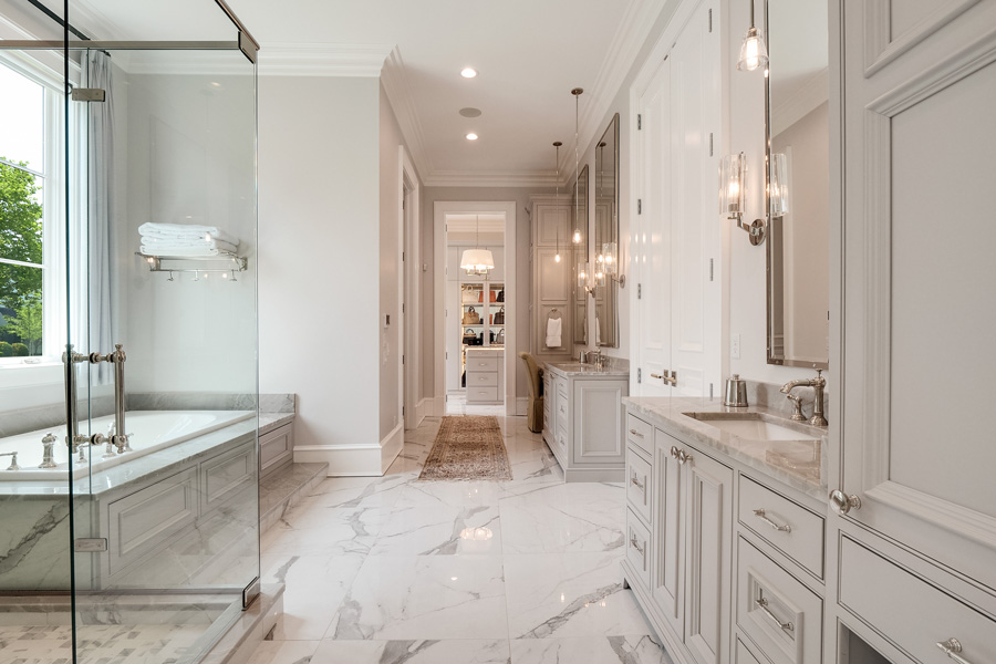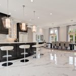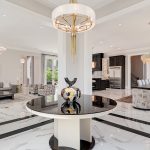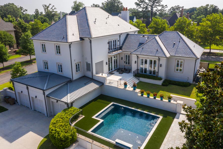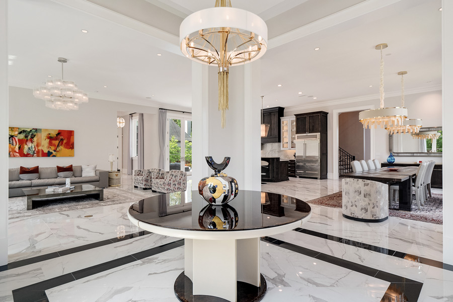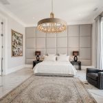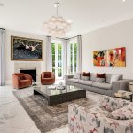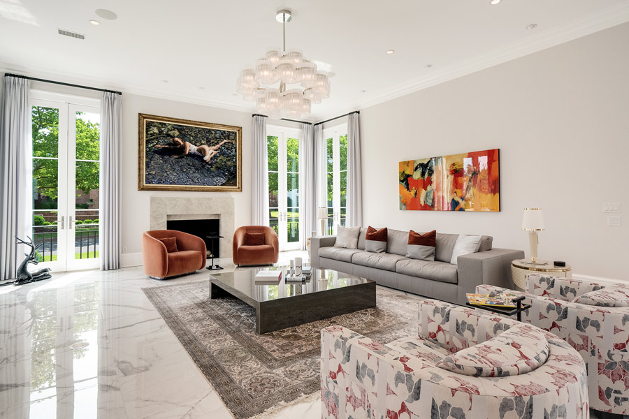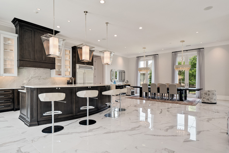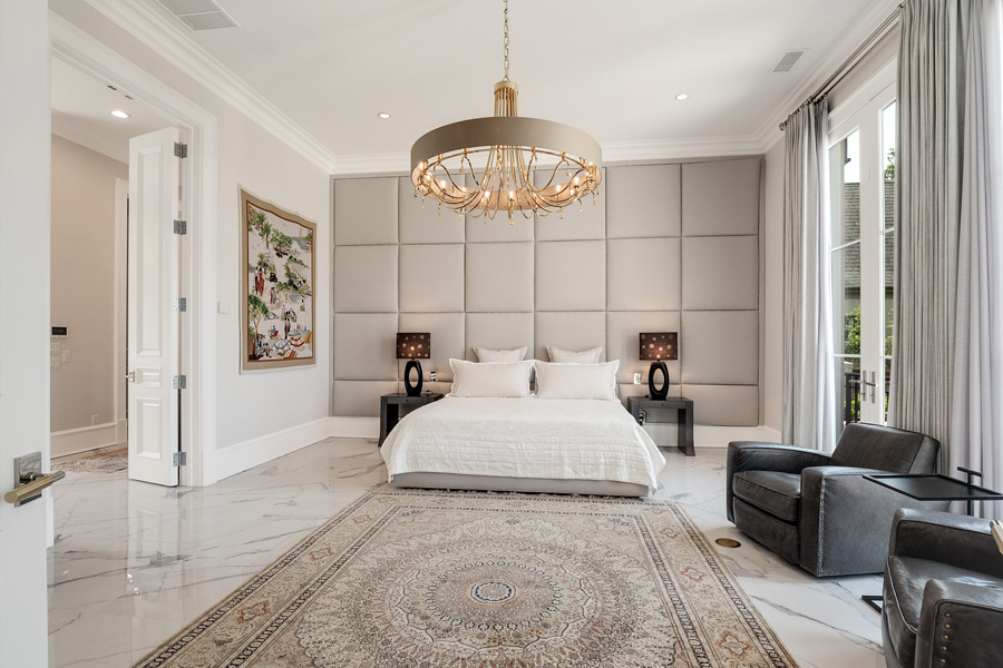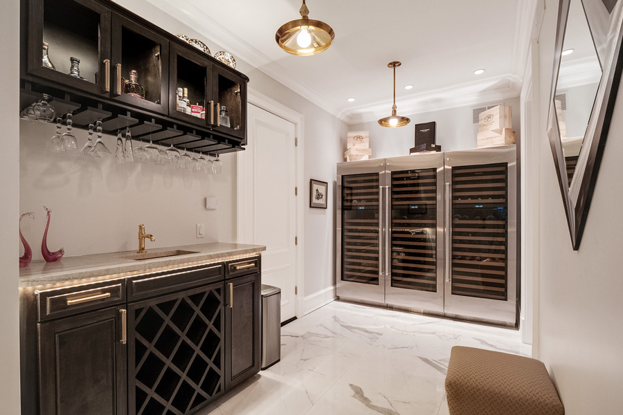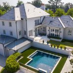 This modern 3-story home welcomes you with a limestone entry and mahogany details. Upon entry, the open floor plan reveals itself, lit by the floor-to-ceiling windows surrounding the space. Modern fixtures and finishes throughout the home elevate each room, adding to the sense of luxury. Large closets and bathrooms fill the home, allowing for plenty of space & storage. An elevator takes you down to the wine cellar, theater, exercise room, and 3-car garage. At the top floor, 3 bedrooms, a playroom, and additional laundry room can be found. A balcony in the playroom overlooks the back yard, proving a view of the pool and outdoor grilling area. Overall, this home exudes luxury and opulence in a timeless fashion.