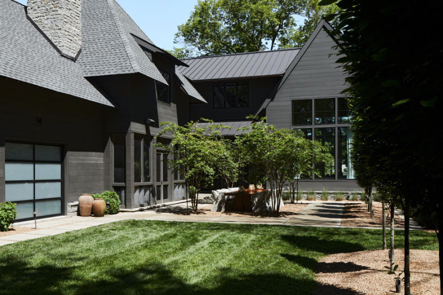 This property was extra deep and fairly narrow across the street width. The design maximized the lot’s characteristics and created privacy for the family. The clients wanted to create a special entry to welcome their family and friends so we envisioned a beautiful courtyard entry experience with a slightly hidden front door to provide a unique entry experience. The clients very much enjoy entertaining family and friends so the house and outdoor spaces were designed to accommodate this. Careful attention was made to ensure the home had privacy from the adjacent homes, yet all of the spaces are bathed in natural light.