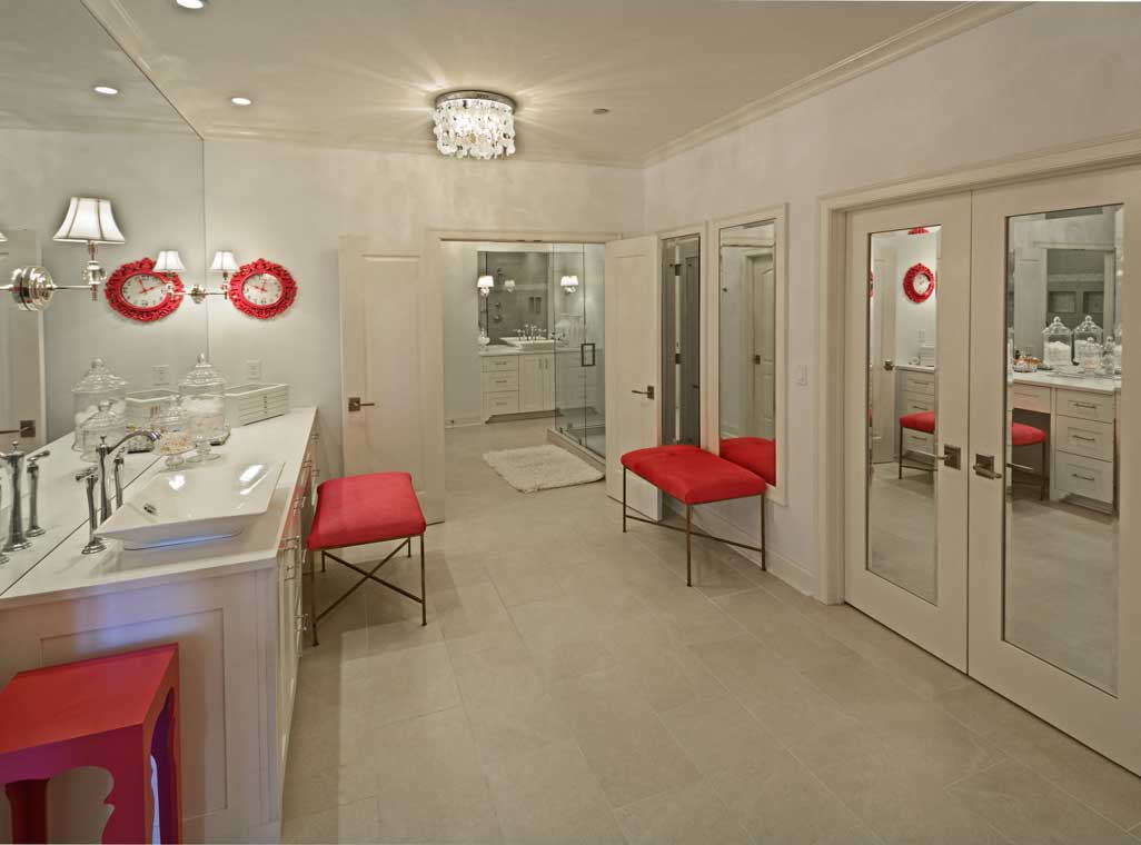 One of the major goals of the renovation was to reinvent the spaces to create a light-filled, exciting, and elegant home. As you can see in the Before photos, the existing home had heavily textured walls and ceilings, heavy tutor-style light fixtures, dark trim, and dark cabinetry. The client knew their house had “good bones,” but wanted something less traditional and more modern. All of the dark, heavy elements were removed, and all new finishes and fixtures were added to create a more uplifting atmosphere and a sense of elegance. In addition, we created two bedroom suites for their two children. The children’s rooms are perfect for their respective activities.