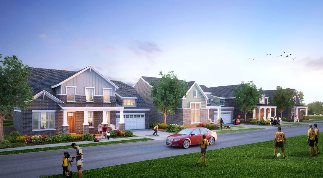 Working with the development team, Shapiro & Company helped shape the architectural vision for this infill community of single family homes. This new community of 150 homes will have significant open space and pocket parks. The architectural vision for the streetscape includes home styles reminiscent of styles popular in the area: Farmhouse, Craftsman, Colonial Revival and English. The successful master plan and vision was a colloboration between the Developer’s team, the City Planning department, Alderman, and Mayor, along with local neighbors who participated in various design presentations. The homes will either be front loaded with the garage entered off the street or alley loaded. With the front loaded homes, deeply recessed garages will be designed to allow the house and front porch to shape the streetscape and not the garage. Homes designed and built in this community will feel as if they existed long ago but with all of the modern amenities that are desired.
