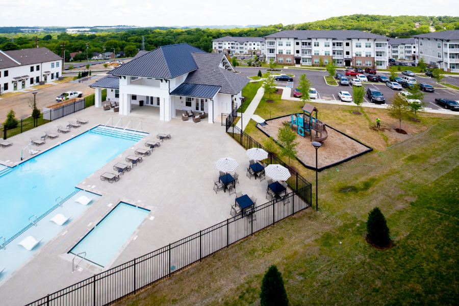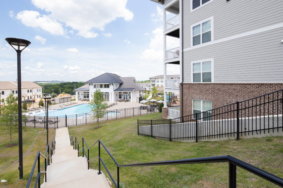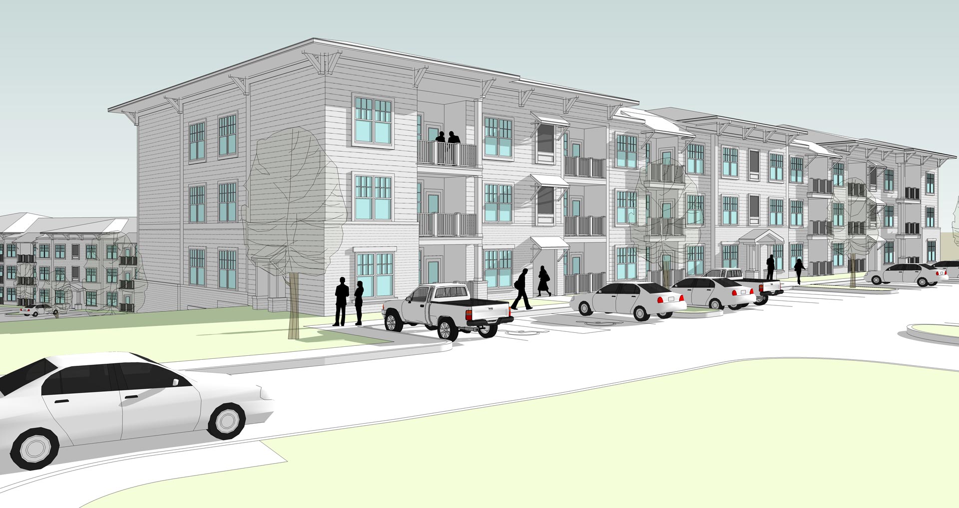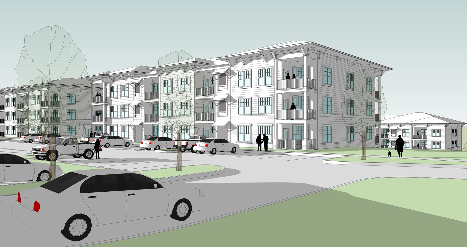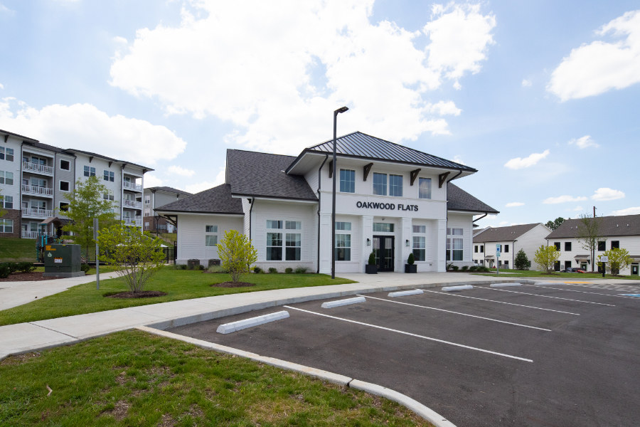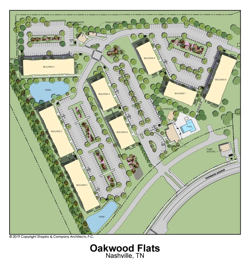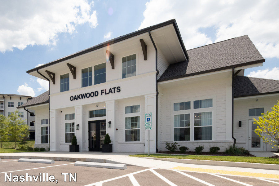 Oakwood Flats is located on a 21-acre property in East Nashville, TN. It is a HUD financed project and includes 280 dwelling units. There are 1, 2, and 3 bedroom units. The 1 bedroom units are 700 sq. ft., the 2 bedroom units are 1,030 sq. ft., and the 3 bedroom units are 1,175 sq. ft. All units have a covered balcony. The buildings are all either 3 stories or a 3/4 story split. The amenities will include a detached community center with exercise room, gathering spaces, a conference center, and a pool.