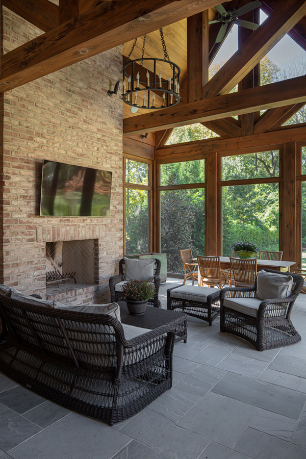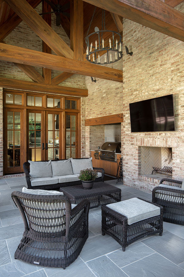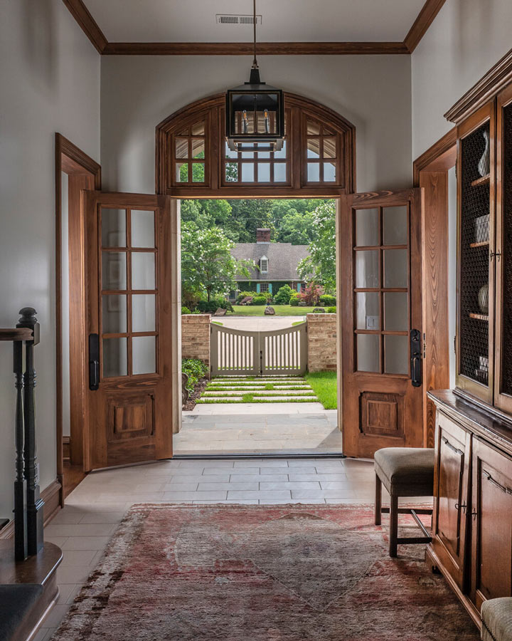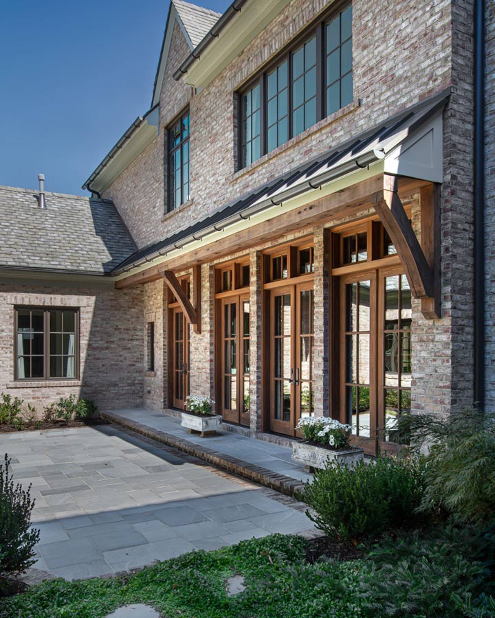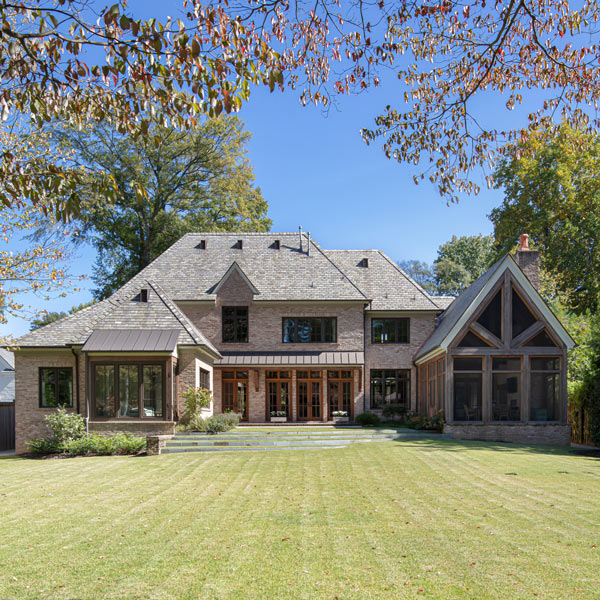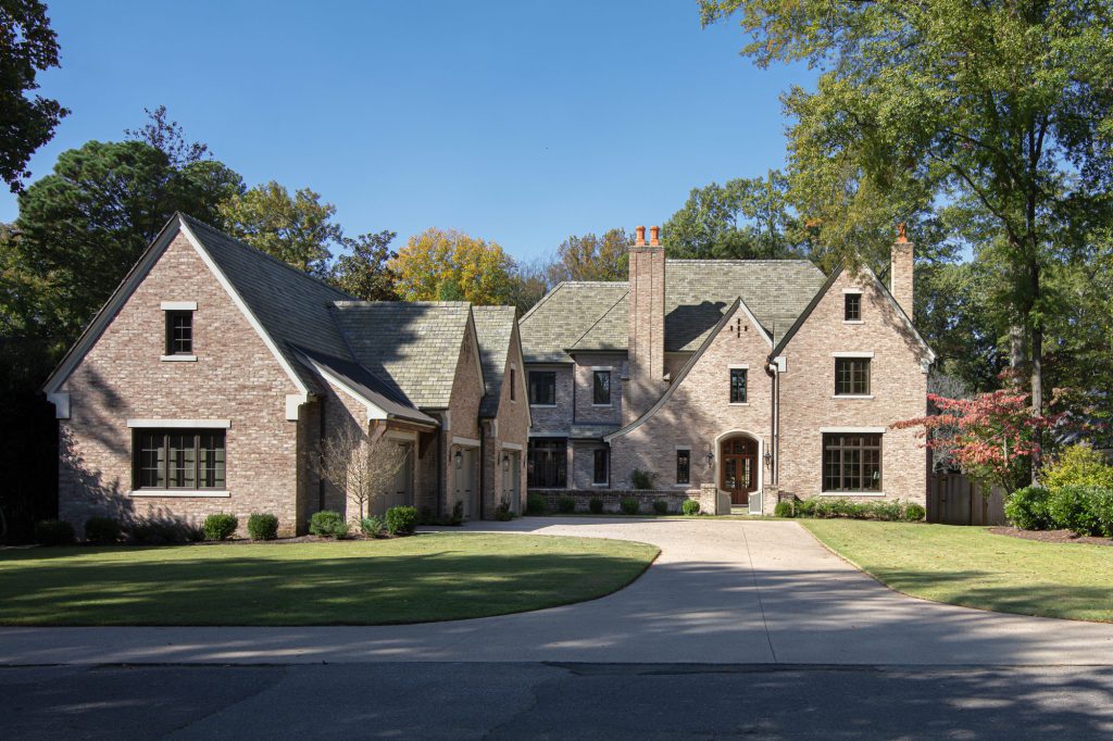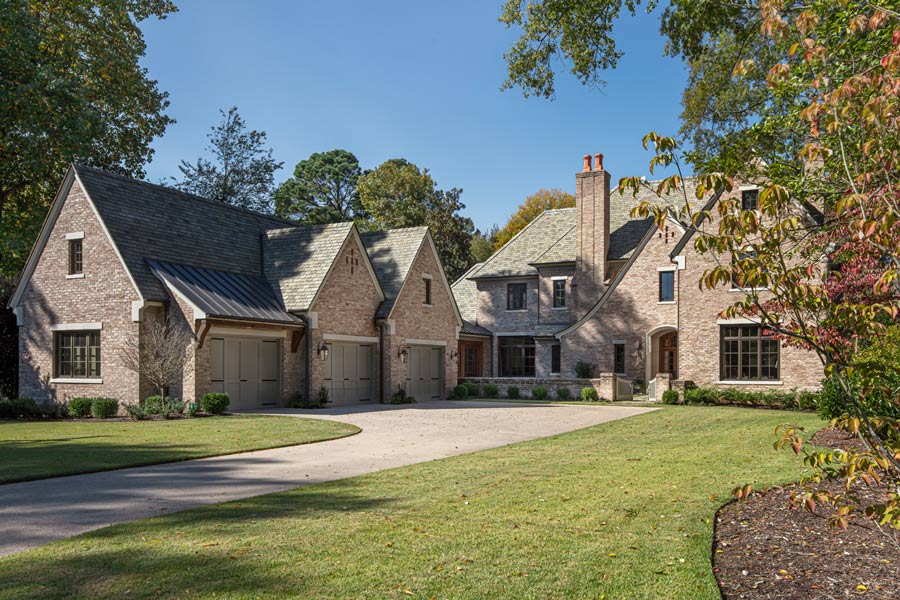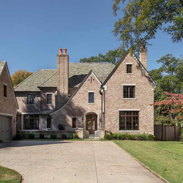 This home was built in an infill lot in an older, established, East Memphis neighborhood. We wanted to make sure that the architecture fits nicely into the mature neighborhood context. The clients enjoy the architectural heritage of the English Cotswold and we have created an updated/modern version of this style with all of the associated warmth and charm. As with all of our designs, having a lot of natural light in all the spaces is very important. The main gathering space has a beamed ceiling with windows on multiple sides that allows natural light to filter throughout the space and also contains an English fireplace inglenook. The interior woods and exterior materials including the brick and slate roof were selected to enhance that English cottage architecture.