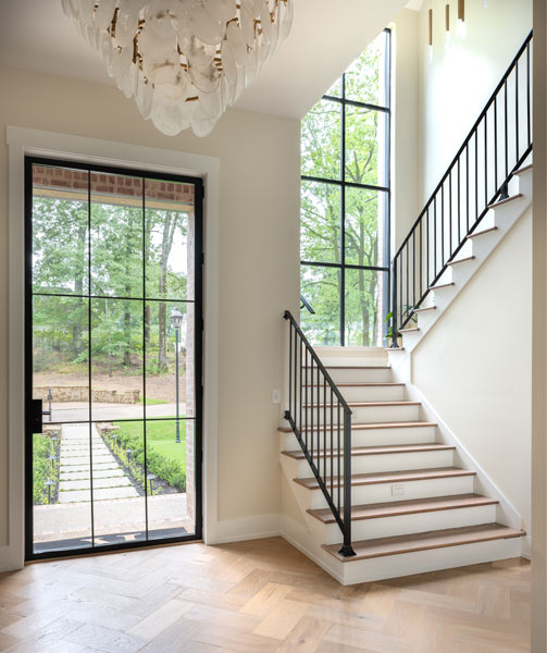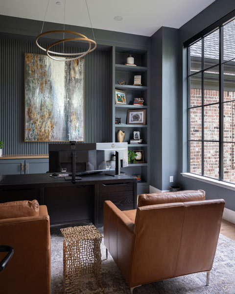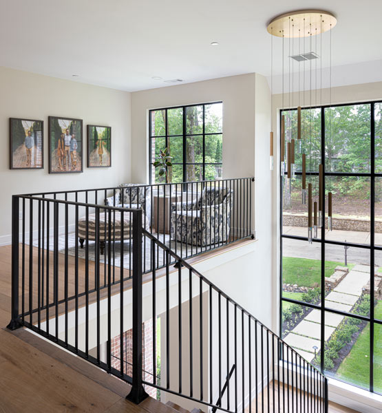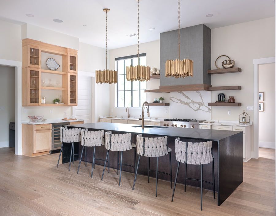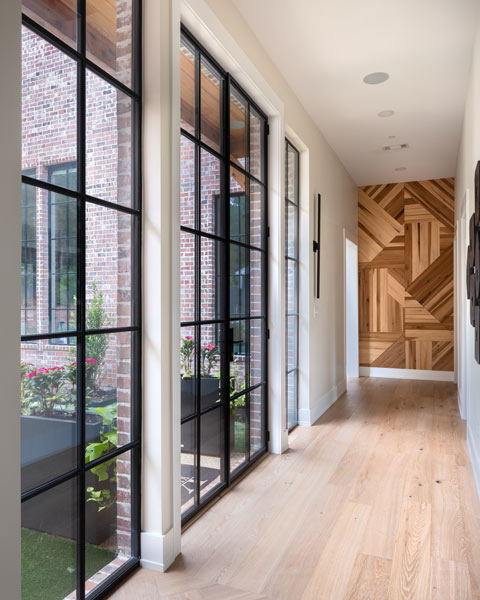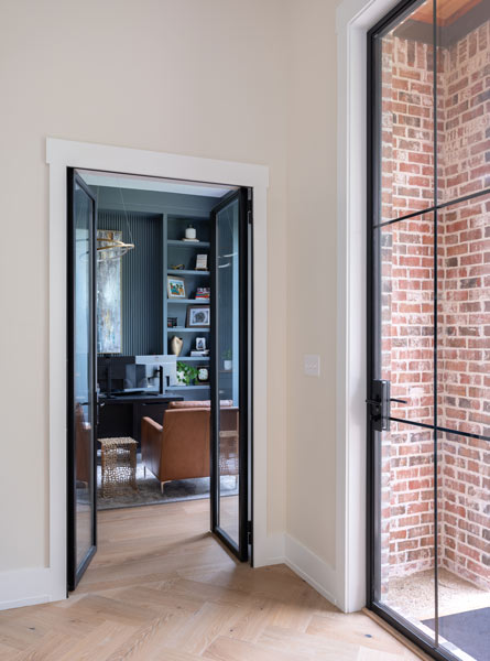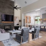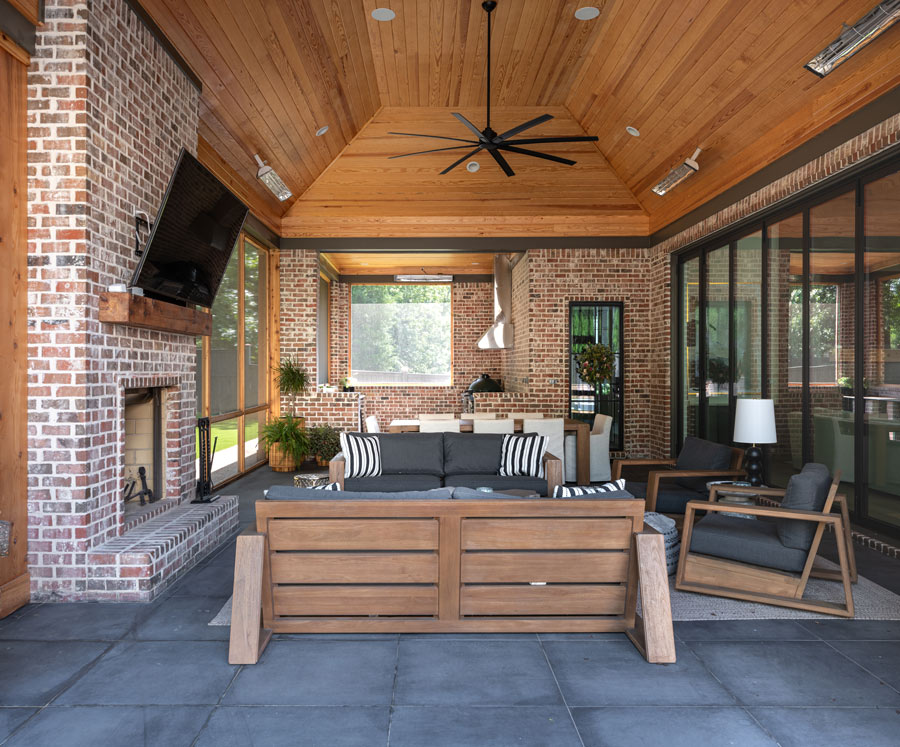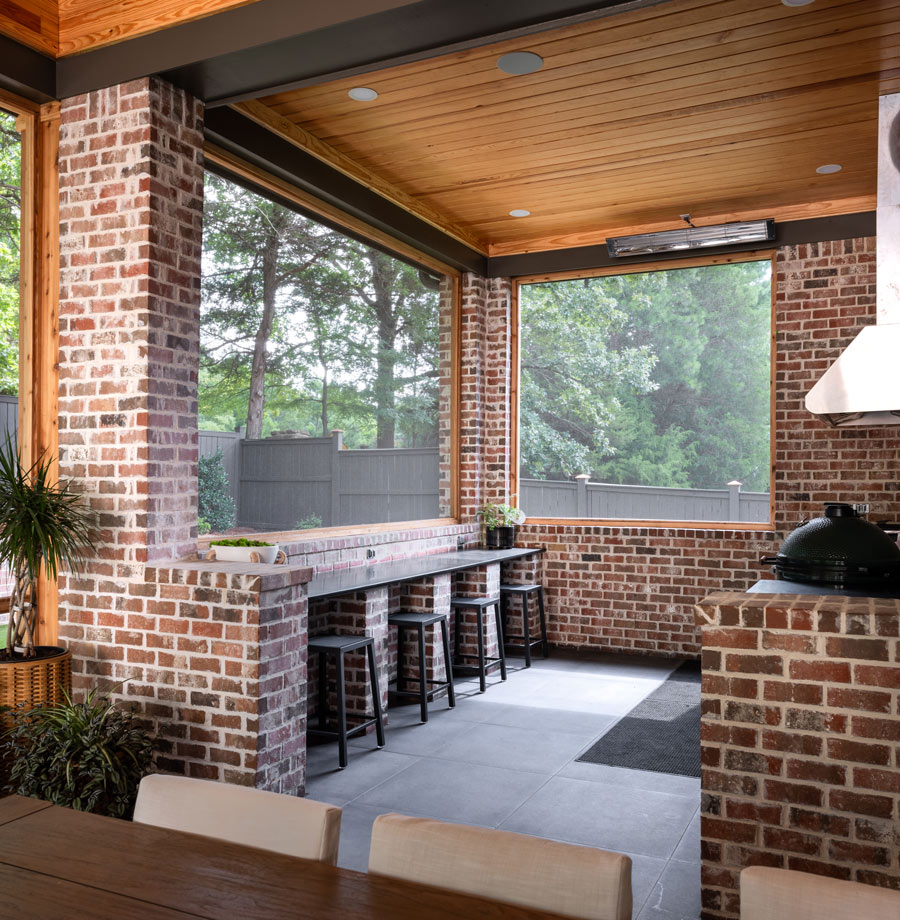 Our clients envisioned a home that would accommodate large gatherings of family and friends in a way that prioritizes comfort and connectivity. The home features five bedrooms, two home offices, a spacious primary bedroom with a luxury bathroom, his & hers closets, a retractable screened porch with grilling area and built-in seating, and a custom pool and hot tub. An open kitchen and vaulted family room, ideal for entertaining, spill into a screened porch, ensuring a seamless indoor-outdoor connection. Floor-to-ceiling windows flood every room with natural light. The guest suite is integrated into the primary residence but is strategically located to provide privacy and independent entry. The primary bedroom overlooks the pool, and a large floor-to-ceiling glass door connects their room directly to the courtyard and pool. The teenage children have their own upstairs oasis, with their own rooms, a large media room, and a built-in refreshment area.