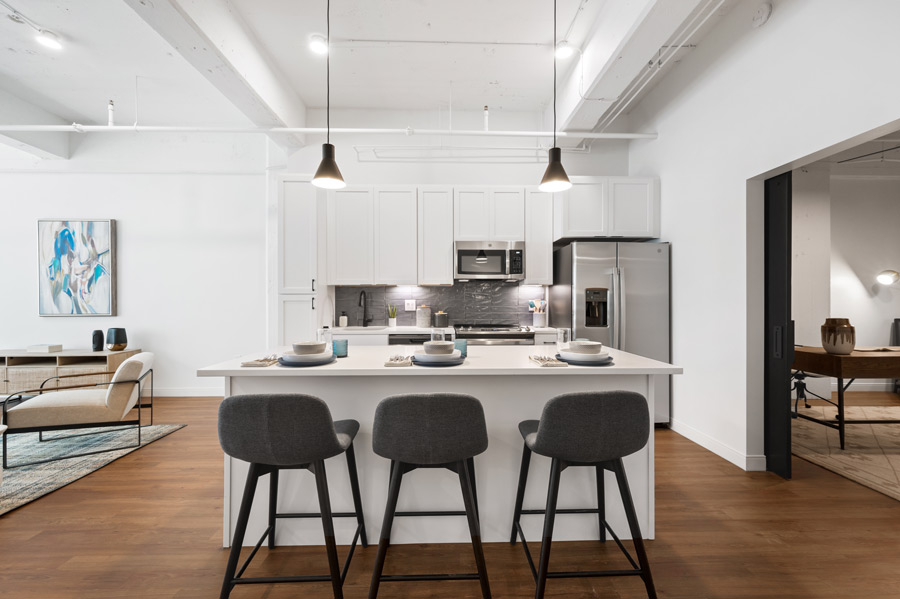 Shapiro & Company Interiors was chosen to select, procure and install all of the furnishing and furniture for this $130M historic conversion apartment building that occupies an entire city block. This project is a conversion and revitalization of the 735,000 sqft historic Butler Brother’s Building into modern apartments. The selections include a vast amount of amenity space, a grand lobby, monumental stairs, office space, courtyards, model units, and rooftop pool furniture and furnishings. The selections respond to Butler Brother’s historic industrial architecture with a modern appeal to the crossover market of the refined downtowner and the eclectic Soulard resident.