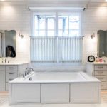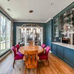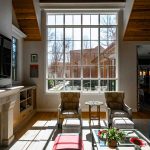 The primary suite is located on the first floor with expansive windows overlooking the park-like street.