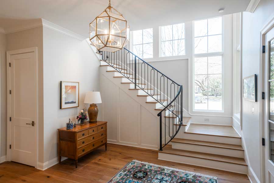 Our clients wanted a custom home that responded to their new status as empty nesters. Their existing home did not accommodate their new life pattern and were fortunate to find a property on one of the most beautiful, historic, park-like streets in the city. The neighborhood has several 1940’s era Georgian, Colonial and Tudor homes along with a few modern homes. This mixture of home styles gave us the context to design the home inspired by charming Old European Tudor but detailed in a more modern styling that also reflected the modern needs of our clients.