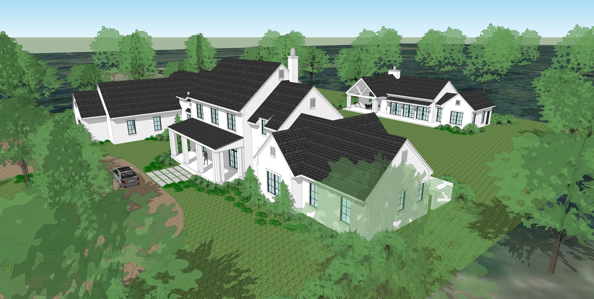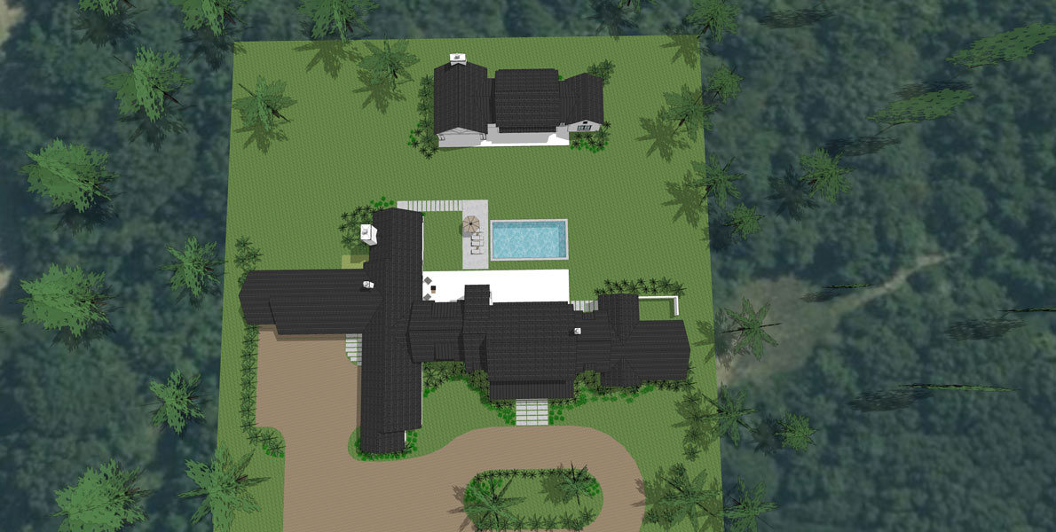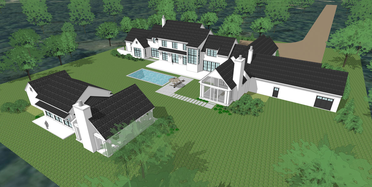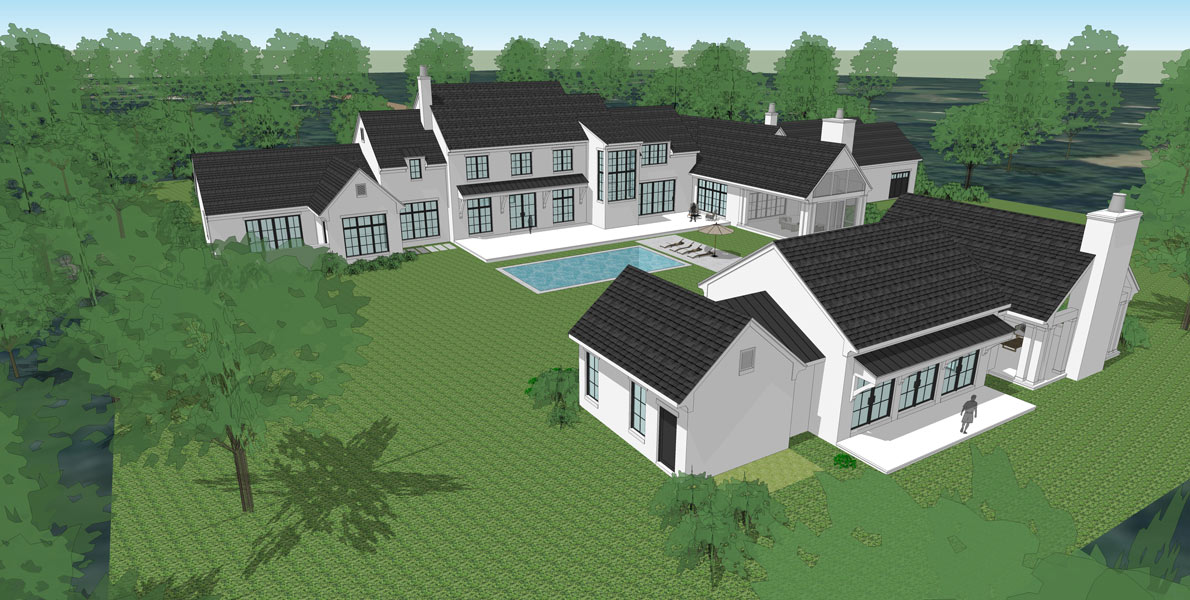 Hidden among a heavily wooded property, this country estate boasts expansive nature views and plenty of room for entertainment. Large, strategically placed windows surround the home, giving you the maximum natural view in nearly every room. This family’s love for food and cooking shines through, with a massive dining room, large scullery and pantry, oversized refrigerators and freezers, 4 ovens, and a full outdoor grilling area. The main entertainment zone is in the back, where a pool house is equipped with a full guest suite, kitchen area with a bar, a large den, and a covered pavilion with an additional grilling area. The entertainment den opens on both sides to allow for air and people to flow freely. The primary suite holds an exercise room, his and hers closets, and a private garden area. Upstairs holds the gallery, playroom, and individual children’s suites, each with their own full bathroom and walk-in closet. Extensive storage lies throughout the home, giving plenty of room for ATV’s and holiday decorations a space to live.